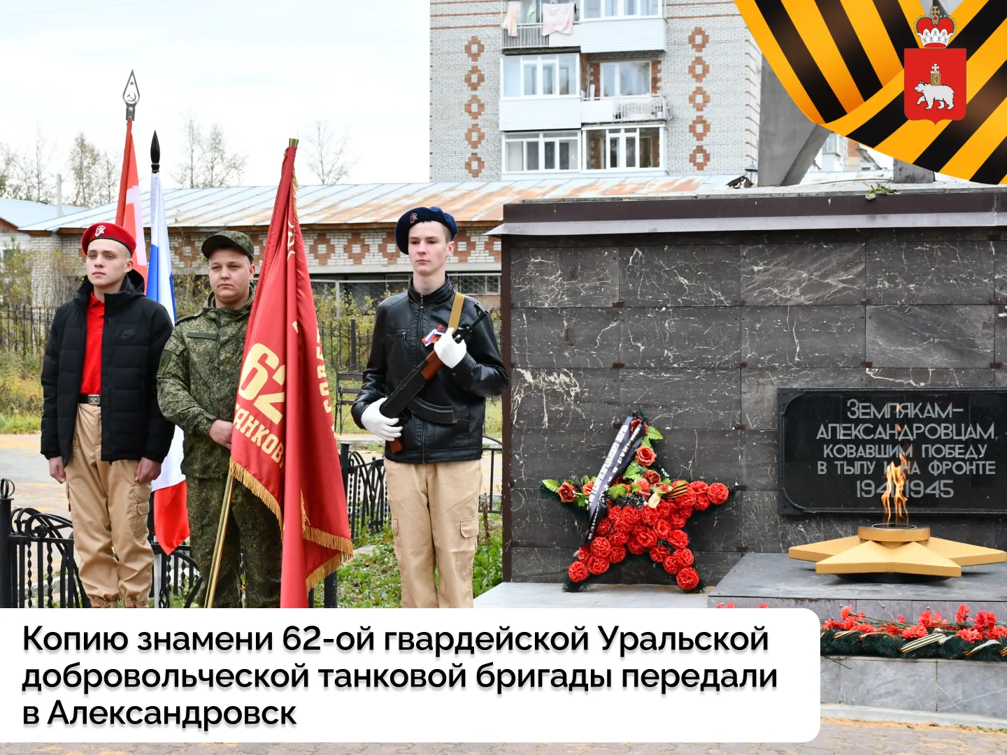 Копию знамени 62-ой гвардейской Уральской добровольческой танковой бригады передали в Александровск