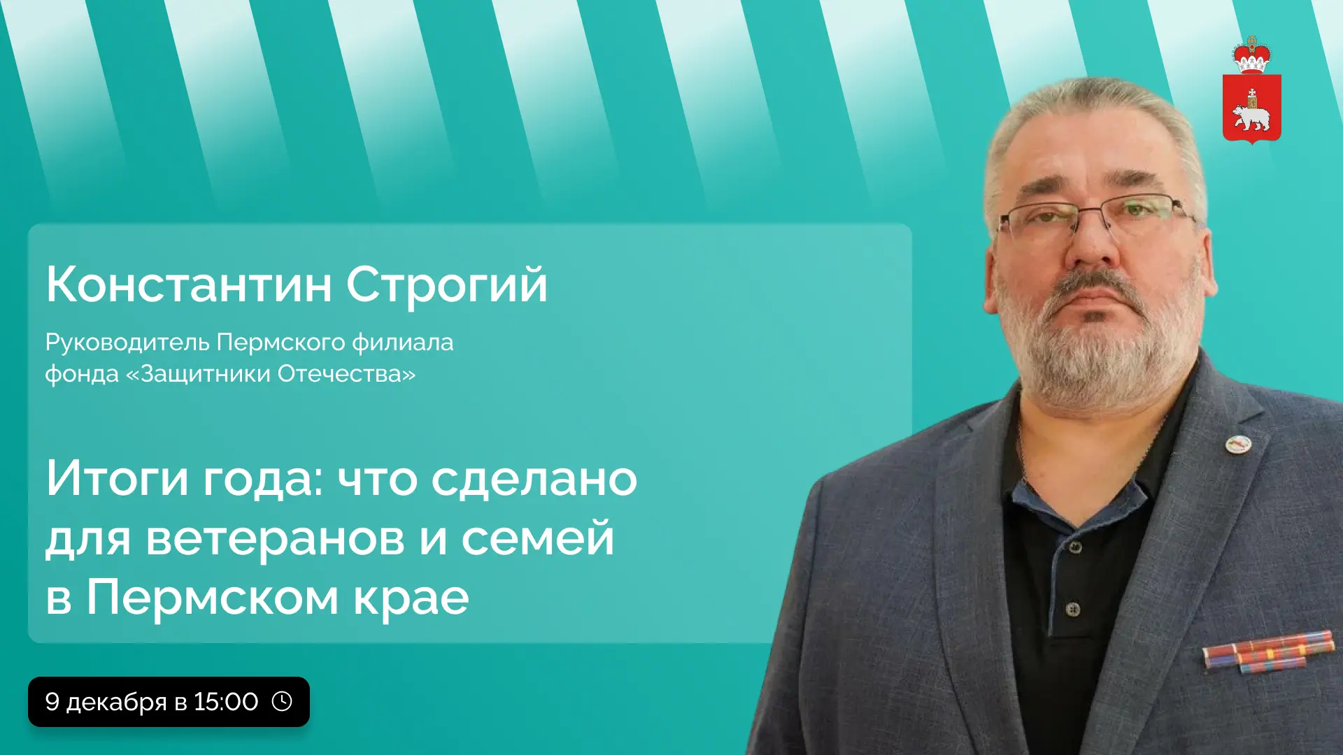 Константин Строгий, руководитель пермского филиала, расскажет о помощи ветеранам и их близким, программах реабилитации, трудоустройства, патриотического воспитания и развития спорта.