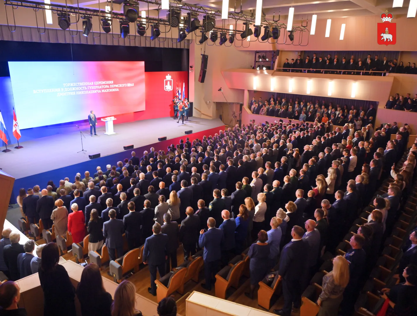 Сегодня, 18 сентября, в зале Пермской филармонии Дмитрий Махонин вступил в должность губернатора Пермского края. На мероприятии присутствовали жители региона, а также представители муниципальных, региональных и федеральных властей.