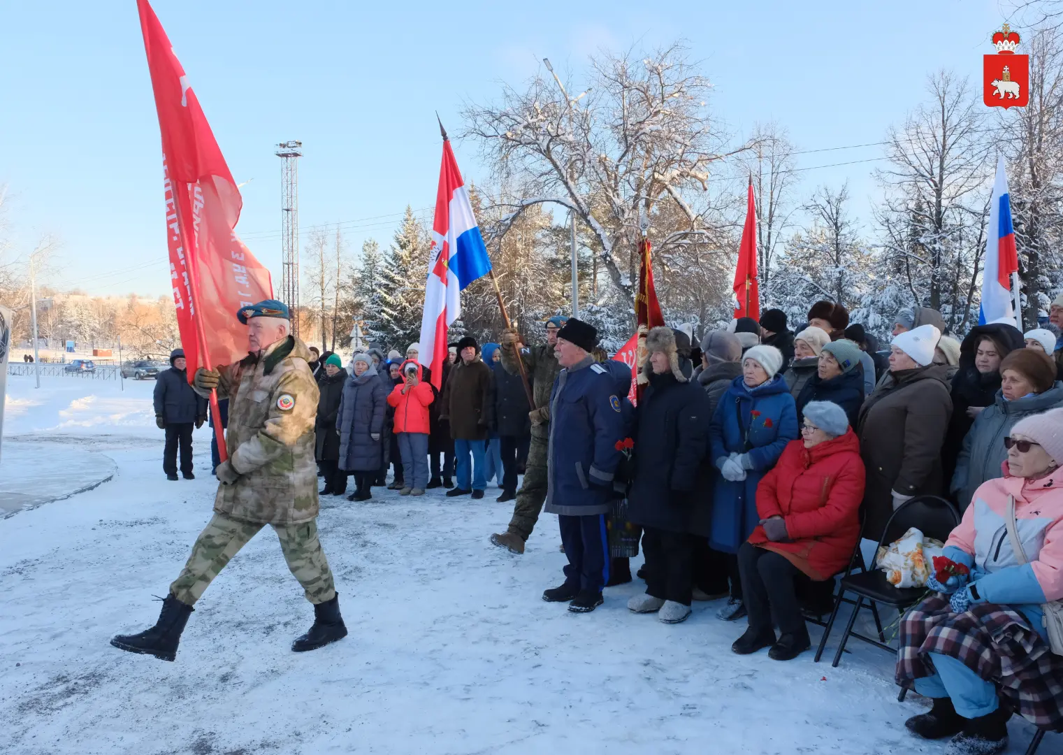 Сегодня, 11 декабря, копию знамени приняла знаменная группа военно-патриотического клуба «Патриот» Красновишерского округа.