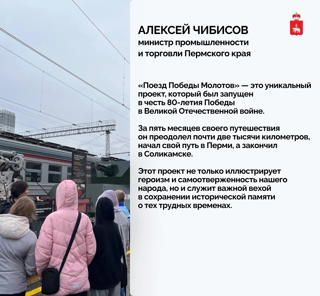 Поезд Победы «Молотов», созданный к 80-летию Победы в Великой Отечественной войне, завершает свою работу в Прикамье
