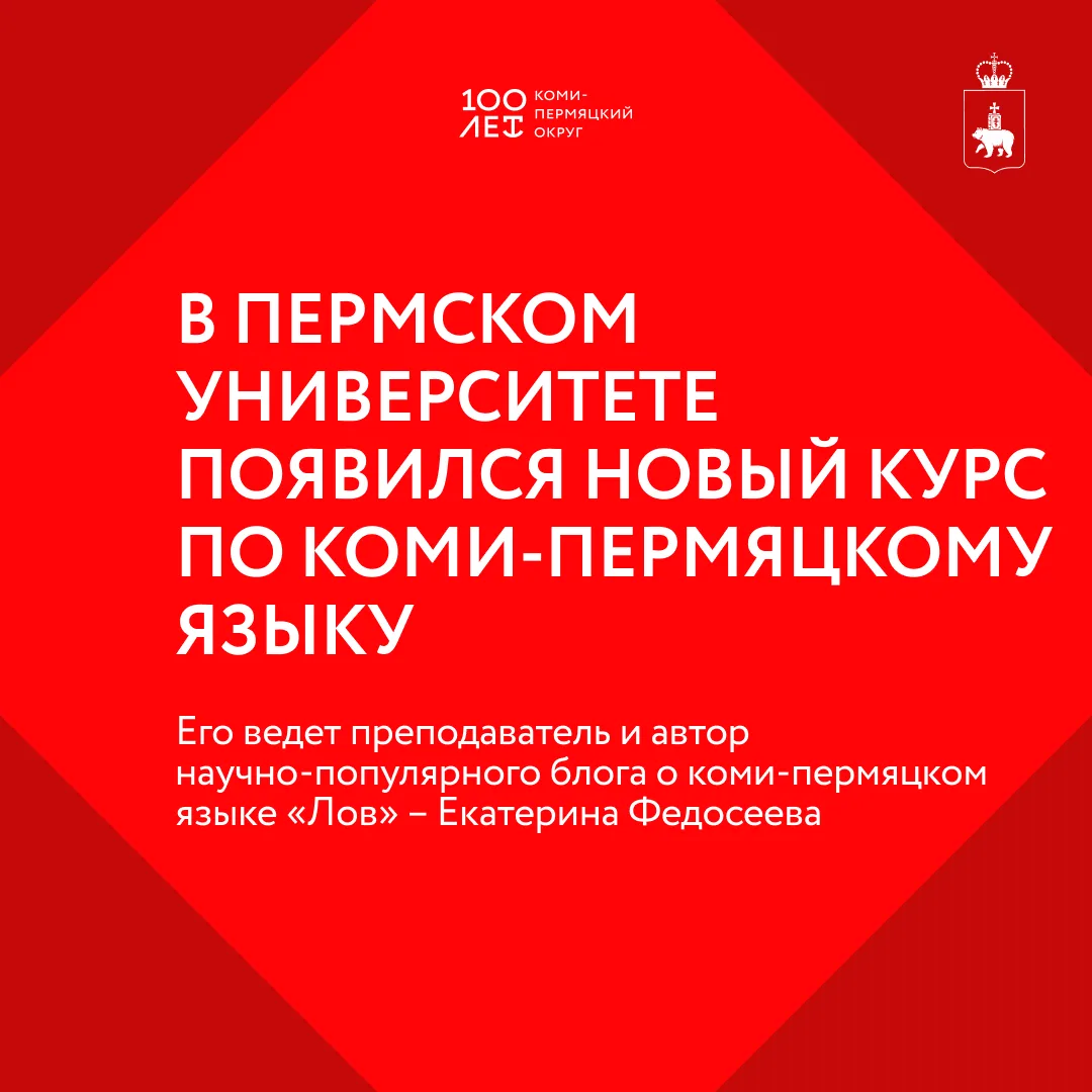 В Пермском государственном национальном исследовательском университете (ПГНИУ) появился новый курс по коми-пермяцкому языку. Его ведет Екатерина Федосеева, преподаватель и автор блога «Лов». Элективный курс рассчитан на три месяца и доступен для студентов всех факультетов.