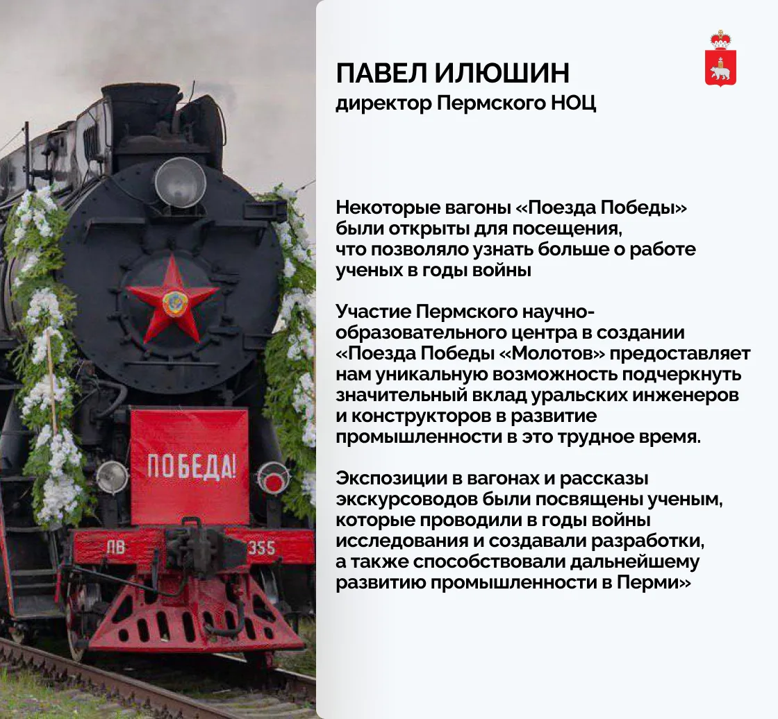 В Перми посетить «Поезд Победы» можно 13 октября. Регистрация откроется 12 октября на сайте 👉 поездпобеды.рф