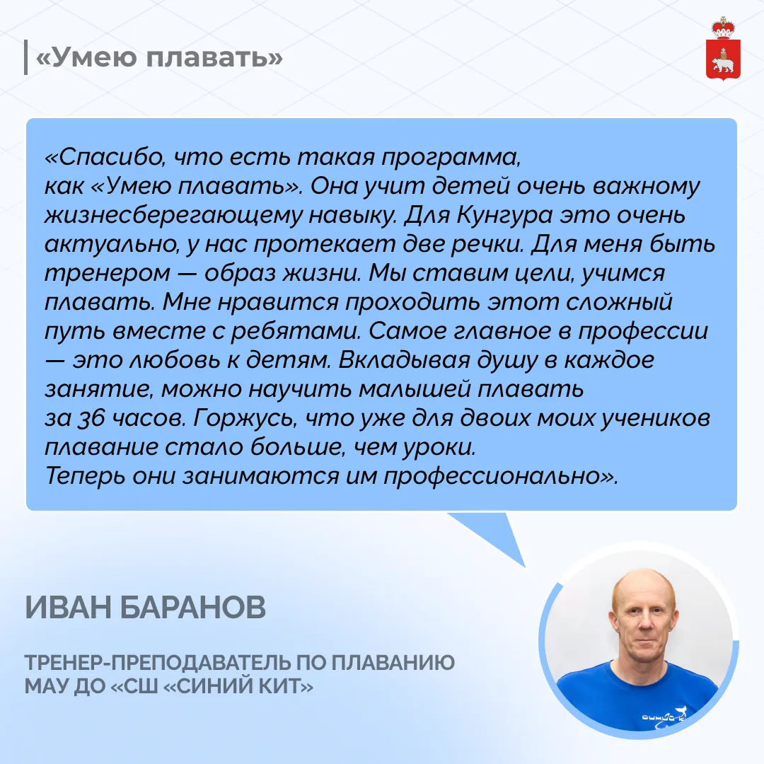 В Пермском крае продолжается реализация регионального проекта «Умею плавать». В четвертом сезоне участниками стали более 4 тысяч третьеклассников из 29 муниципалитетов Прикамья.