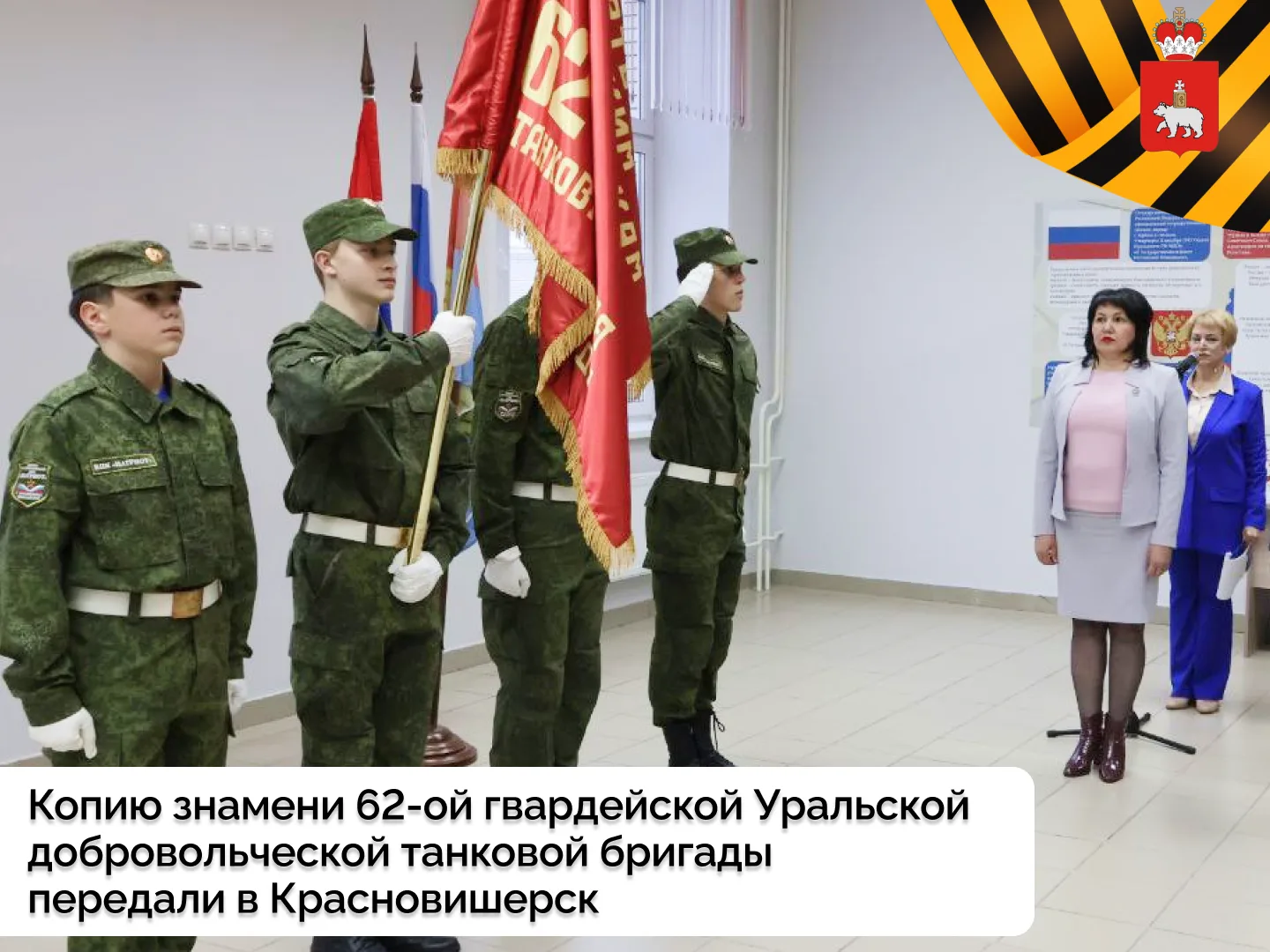 Копию знамени 62-ой гвардейской Уральской добровольческой танковой бригады передали в Красновишерск