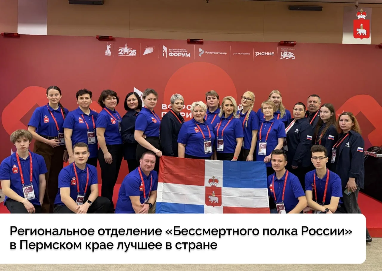 В Москве в рамках всероссийского форума «Память вне времени», посвященного 10-летию Движения «Бессмертный полк России», определены лучшие региональные отделения. Второй год подряд Пермский край становится лучшим среди 89 регионов.