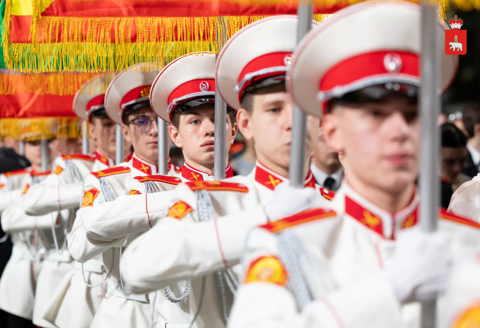Делегация Пермского края состояла из выпускников кадетского училища, которые активно участвовали в региональных и всероссийских мероприятиях и конкурсах. Все они отличники учебы, занесены на доску почета. Юноши имеют звания сержантов и служат в знаменной группе и взводе почетного караула.