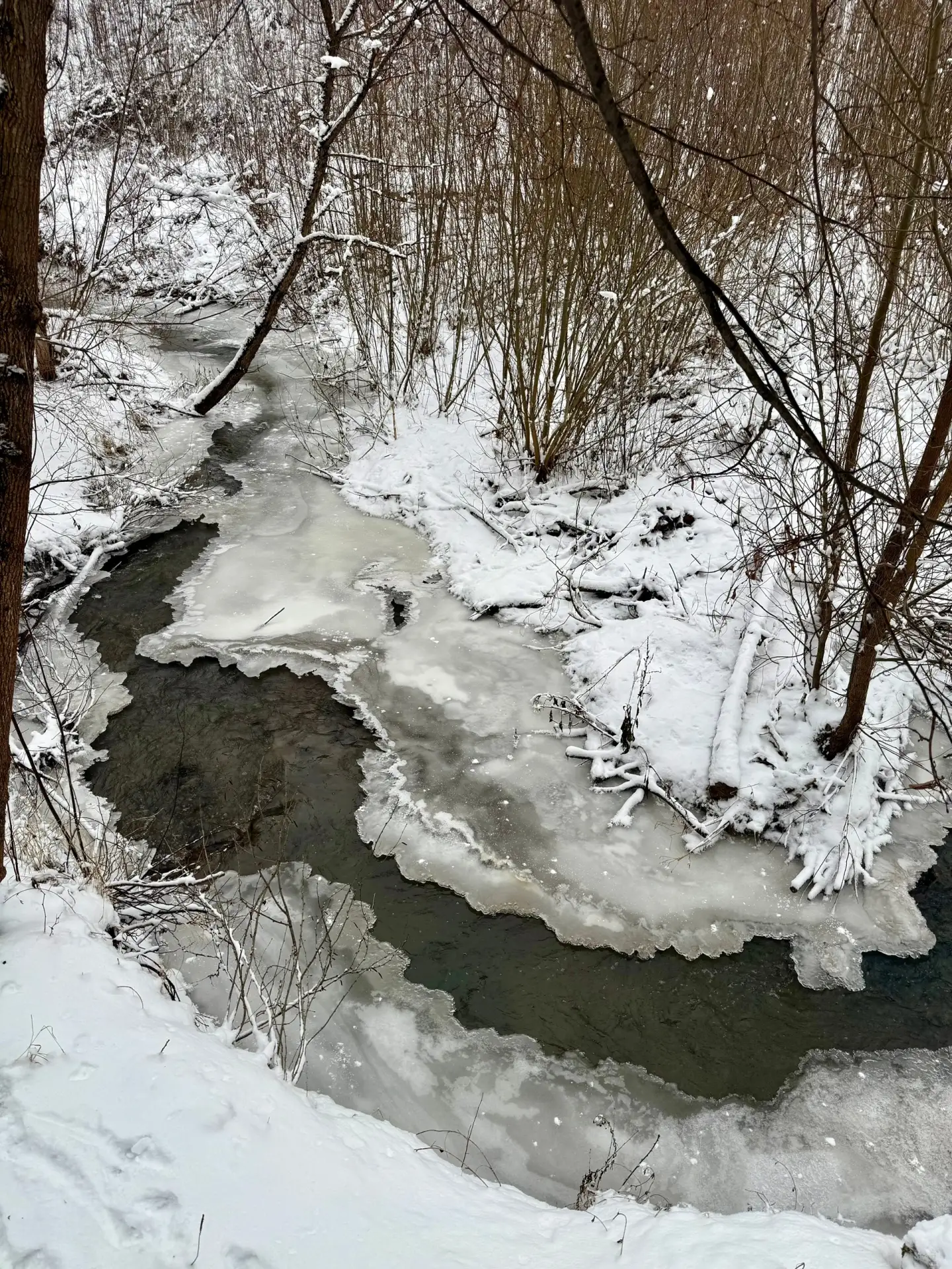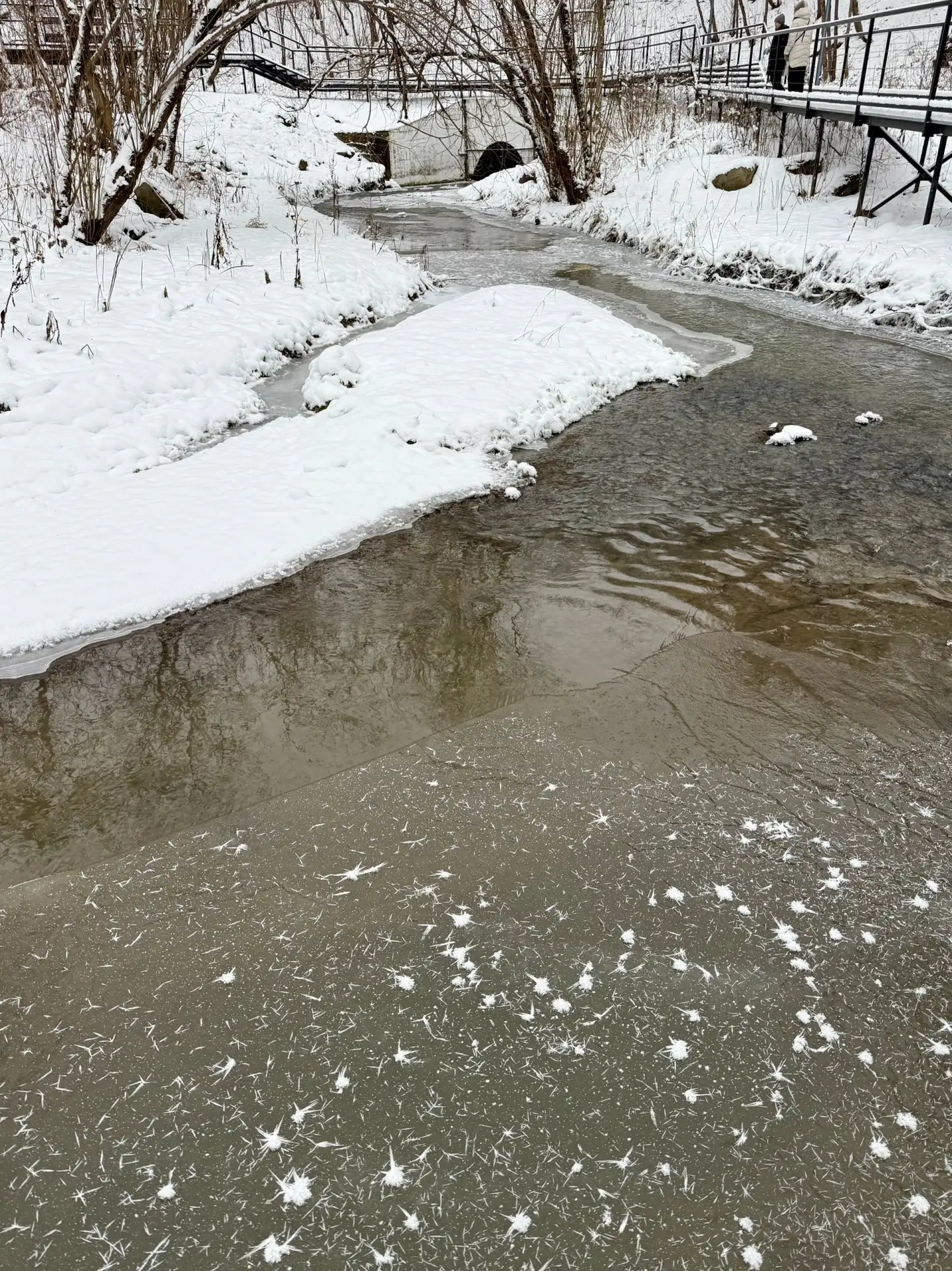 Речка Егошиха в Перми и ледяные «цветы», выросшие благодаря недавним морозам.