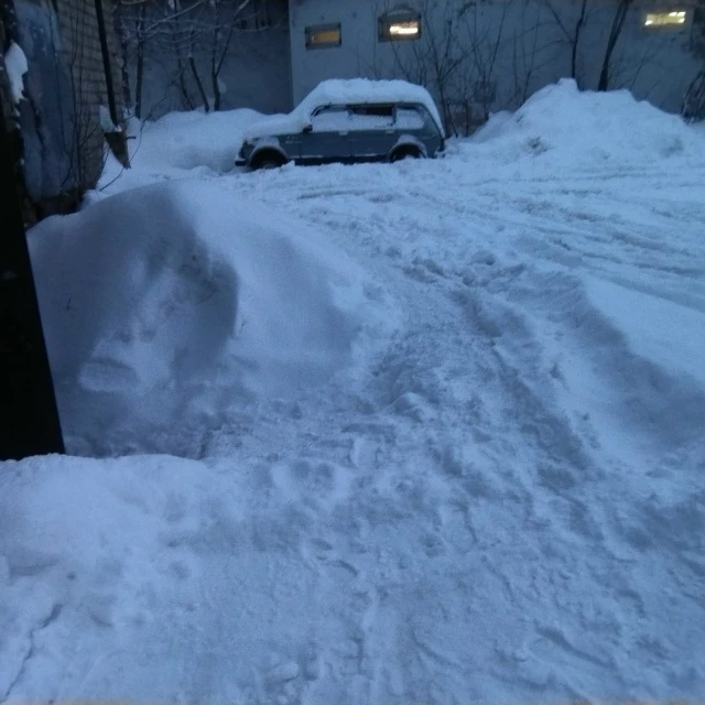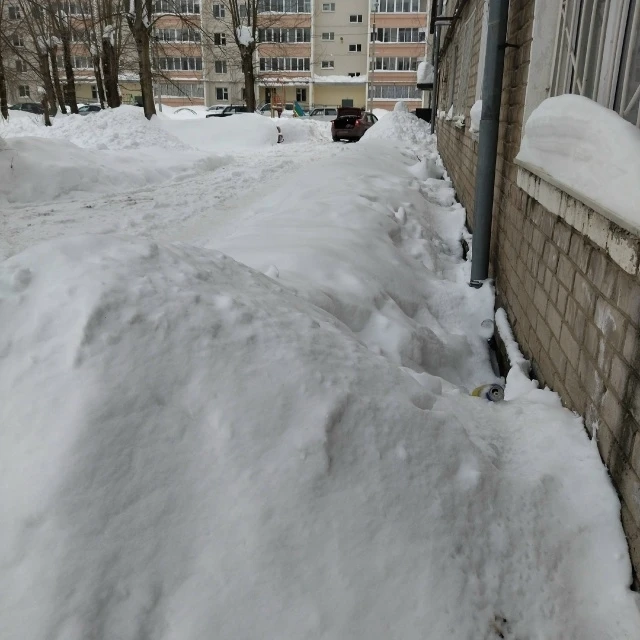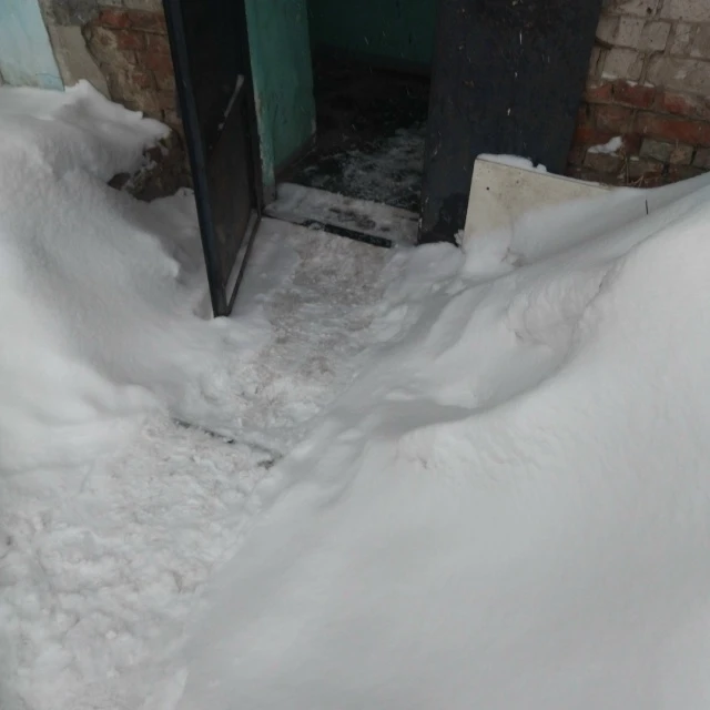 Во дворе огромные сугробы. Весной вся эта вода уйдет прямо в подвал. Машины застревают, даже скорая помощь не может проехать к подъезду. Само состояние входа в подъезд ужасное.