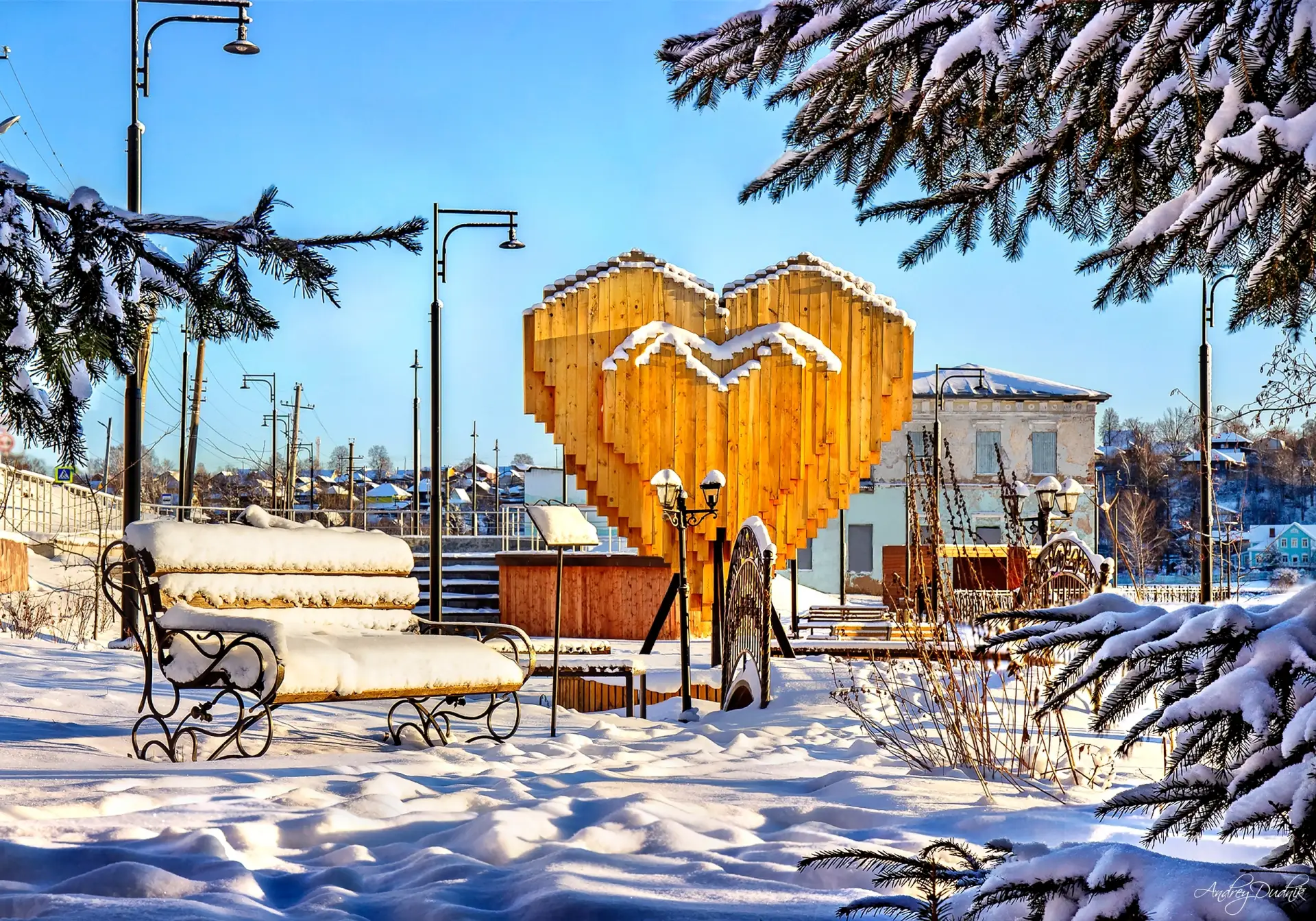 В Кудымкаре установили 11-метровую скамейку для туристов с названием города. Объект расположен на центральной площади и оснащен подсветкой.