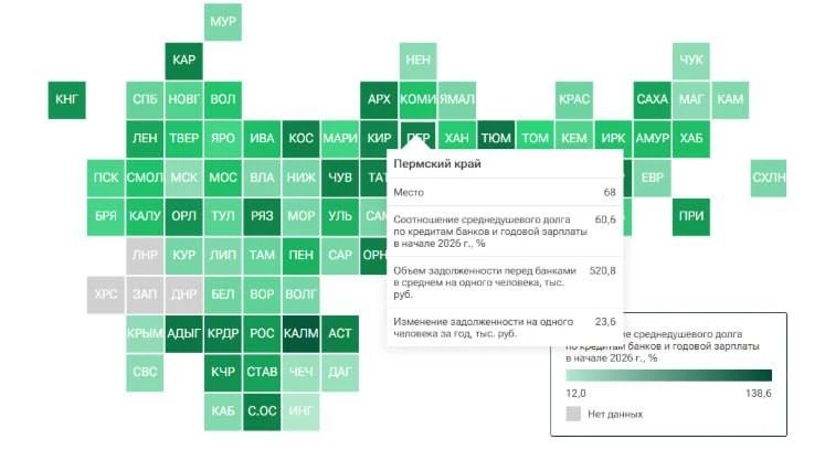 ⚡️Пермский край оказался на 68 месте в рейтинге закредитованности.