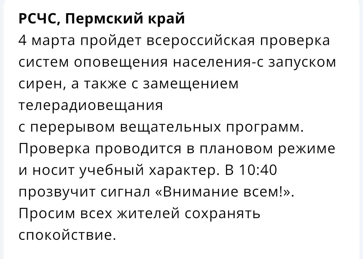 ⚡️Уже завтра утром по всей территории Пермского края прозвучат сирены.