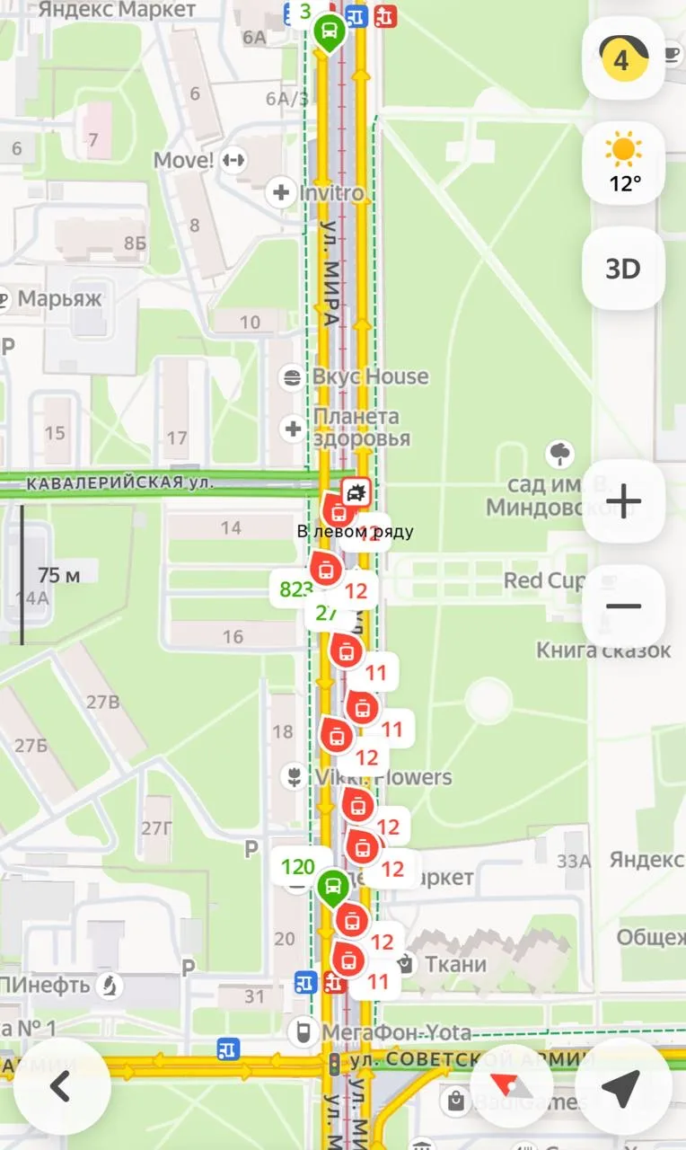 ⚡️На улице Мира встали трамваи №11 и №12 из-за ДТП в левом ряду.