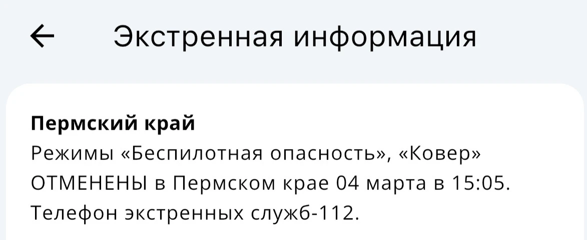⚡️В Пермском крае отменены режимы «Беспилотная опасность» и «Ковер».