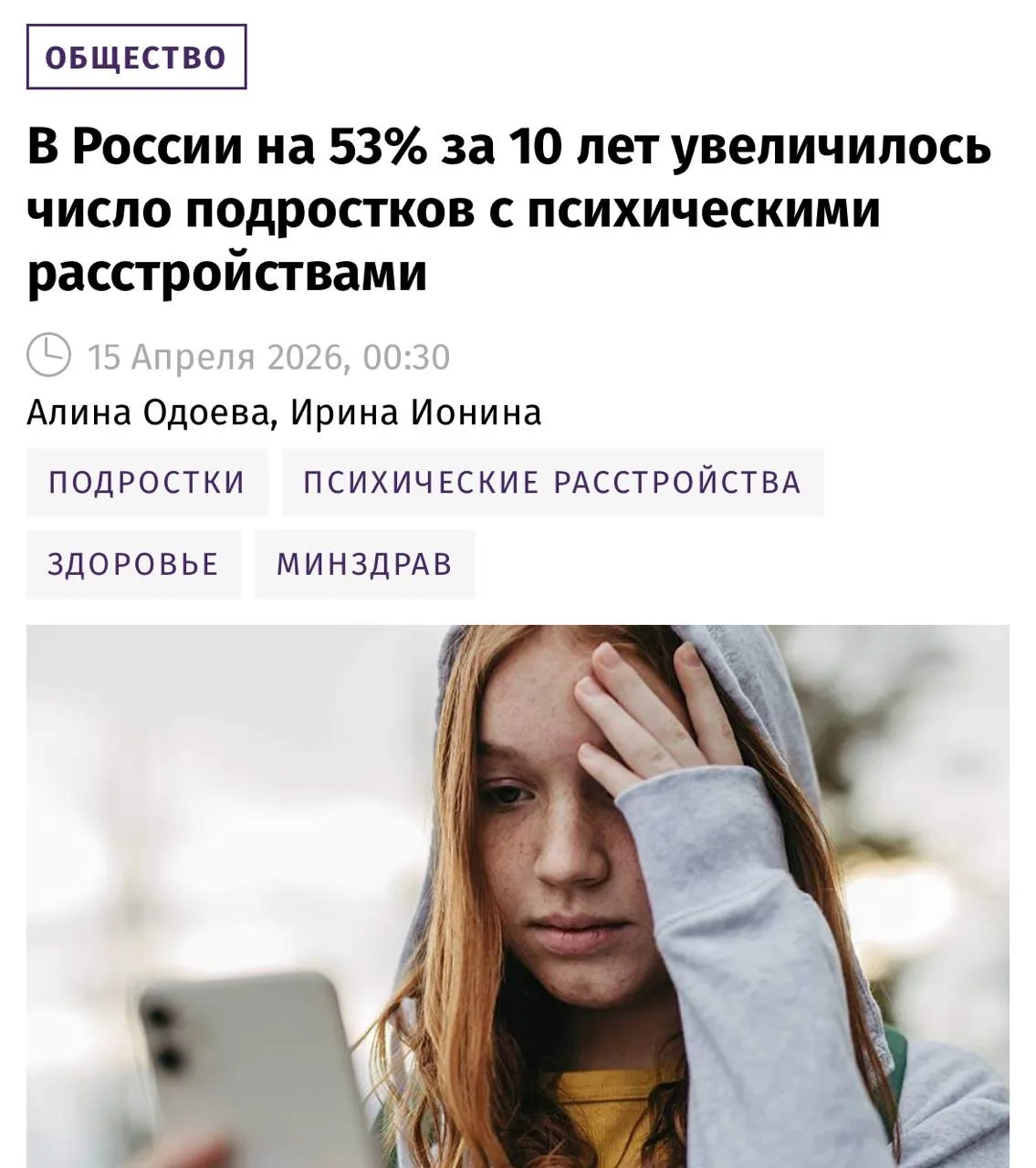 ⚡️Заболеваемость психическими расстройствами среди подростков выросла на 53% за 10 лет.
