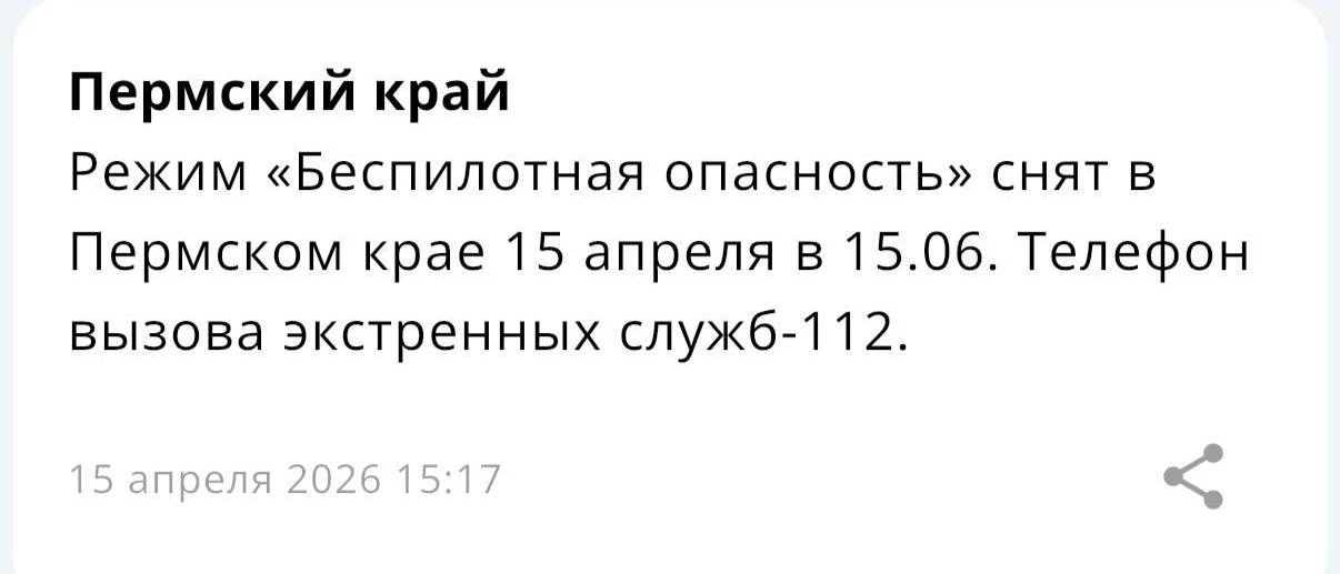 ⚡️В Пермском крае снят режим «Беспилотной опасности».