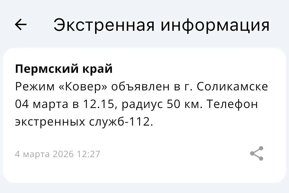 ⚡️В Перми введен режим «Ковер» — радиус действия 100 км.