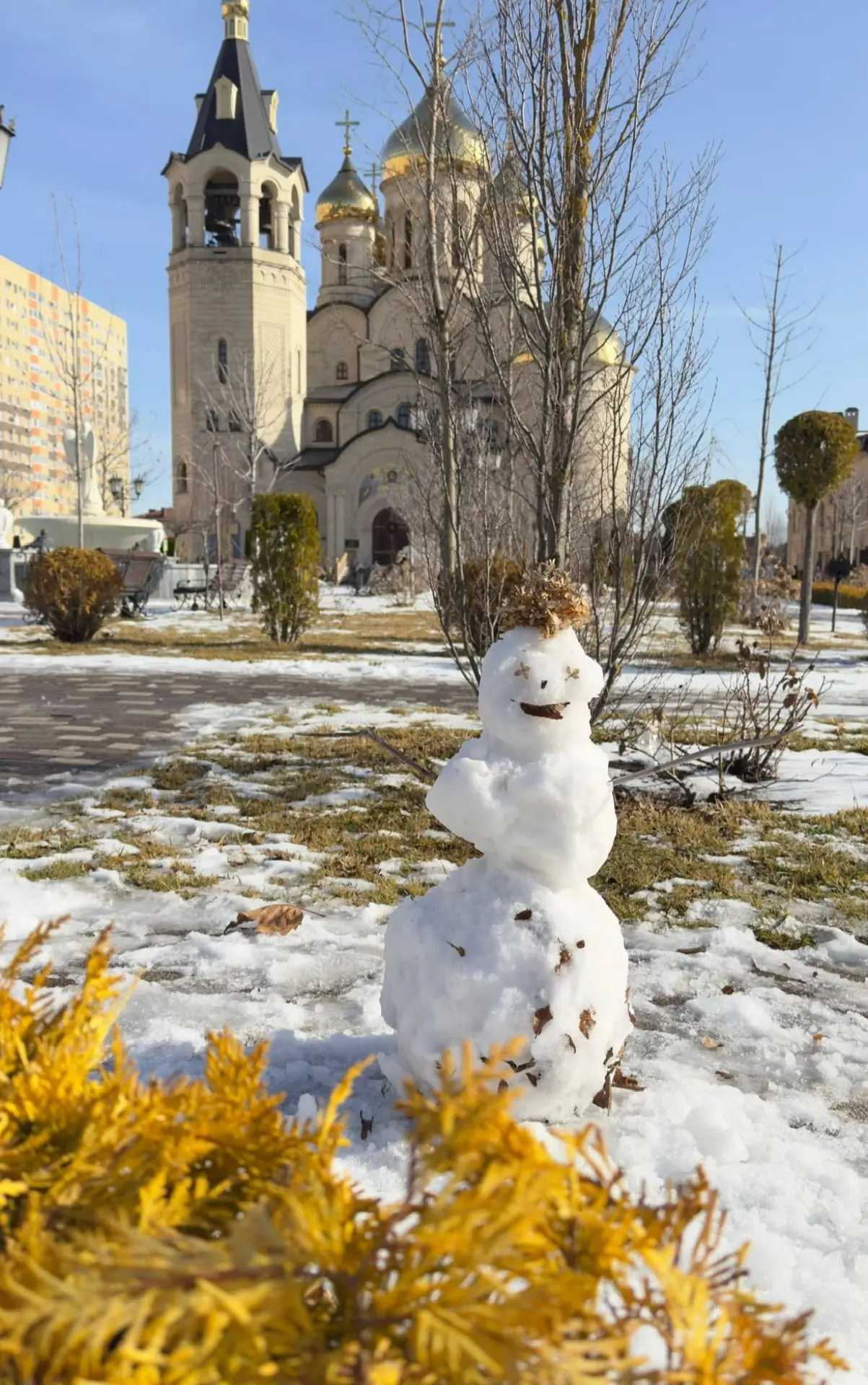 Милый снеговик в +10° на районе ☃️