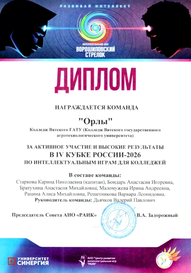 Студенты колледжа Вятского ГАТУ— среди победителей в интеллектуальном состязании!