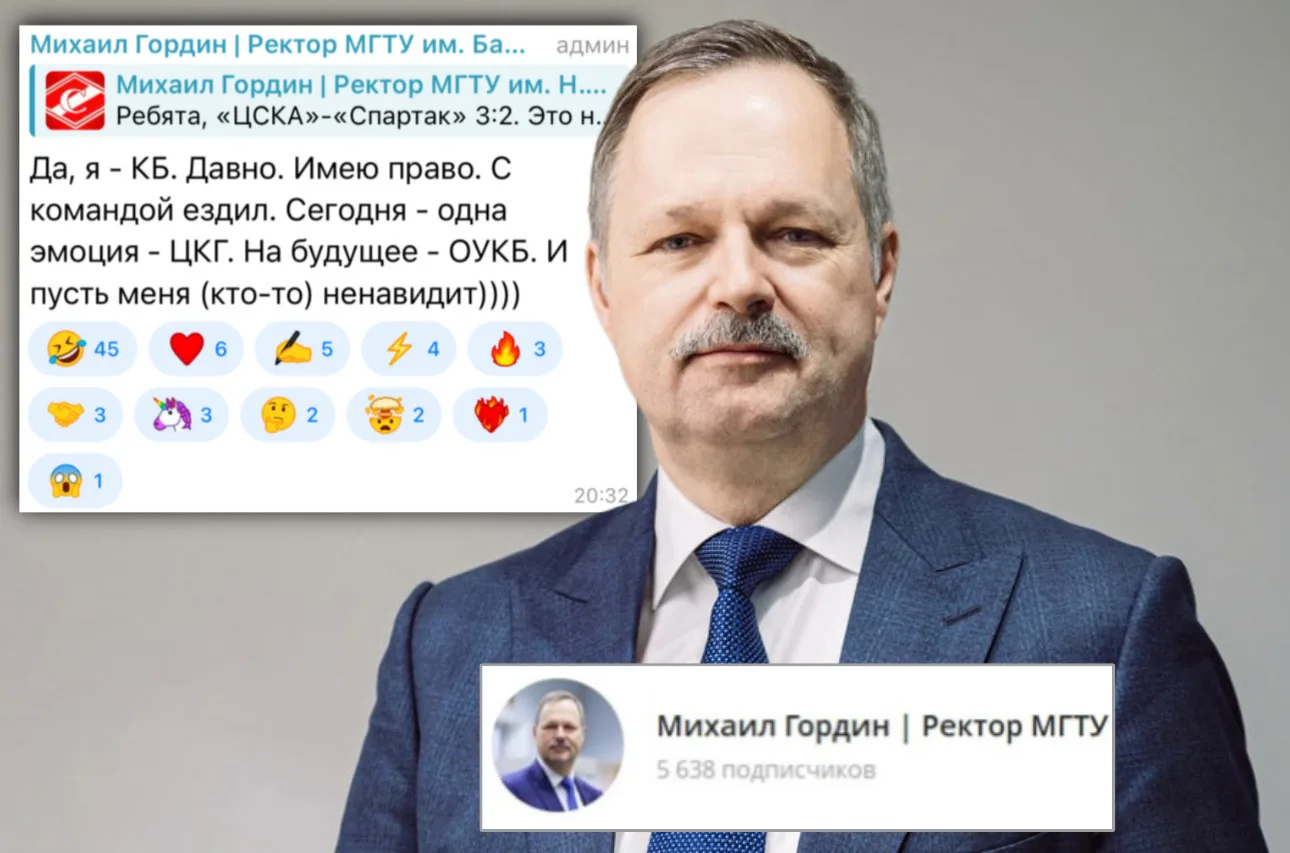 ❗️Ректор Бауманки назвал ЦСКА «ЦКГ» и написал «ОУКБ» в своём официальном канале после поражения «Спартака» в дерби: эти аббревиатуры на фанатском сленге означают «ЦСКА – команда гондонов» и «Отсоси у красно-белых». Позже об этом узнали фанаты ЦСКА – в том числе среди студентов МГТУ им. Баумана – и начали отправлять в канал ректора оскорбительные стикеры про «Спартак». В итоге 56-летний кандидат технических наук Михаил Гордин закрыл комментарии в своём канале