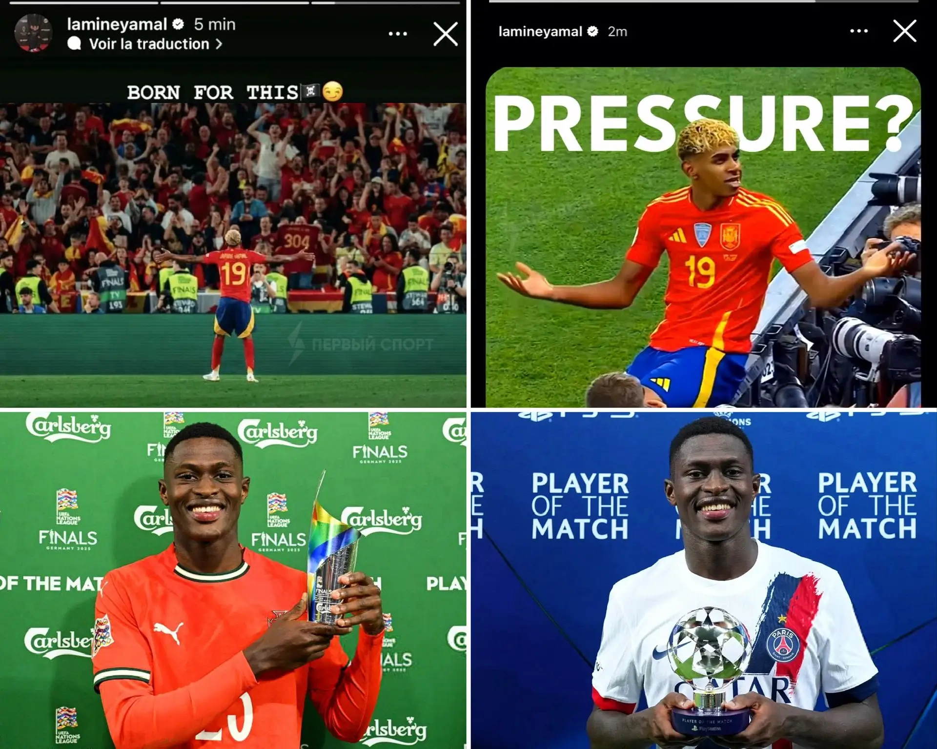 ❗️Ламин Ямаль выложил две сторис перед матчами против сборной Португалии в финале Лиги наций и против «ПСЖ» в ЛЧ: на них были фразы «Рождён для этого» и «Давление?». В обоих матчах Ямаль набрал «0+0»: его команды проиграли, а лучшим игроком оба раза стал защитник Нуну Мендеш, который играл против вингера сборной Испании и «Барселоны» персонально