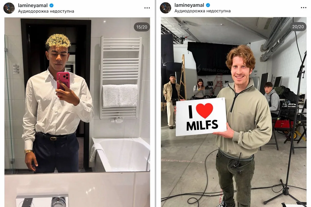 ❗️Ламин Ямаль выложил фото с надписью «Я люблю милф» в своих соцсетях: 18-летний вингер «Барселоны» признался в любви к женщинам постарше в последнем фото своей подборки. В переводе с английского аббревиатура MILF означает «Мамаша, с которой я бы хотел переспать»: мужчин же, которым нравятся такие женщины, называют «милфхантерами». Под категорию «милфы» попадают «сексуально привлекательные женщины в возрасте от 33 до 46 лет»: ранее Ямаль встречался исключительно с женщинами, которые были старше него