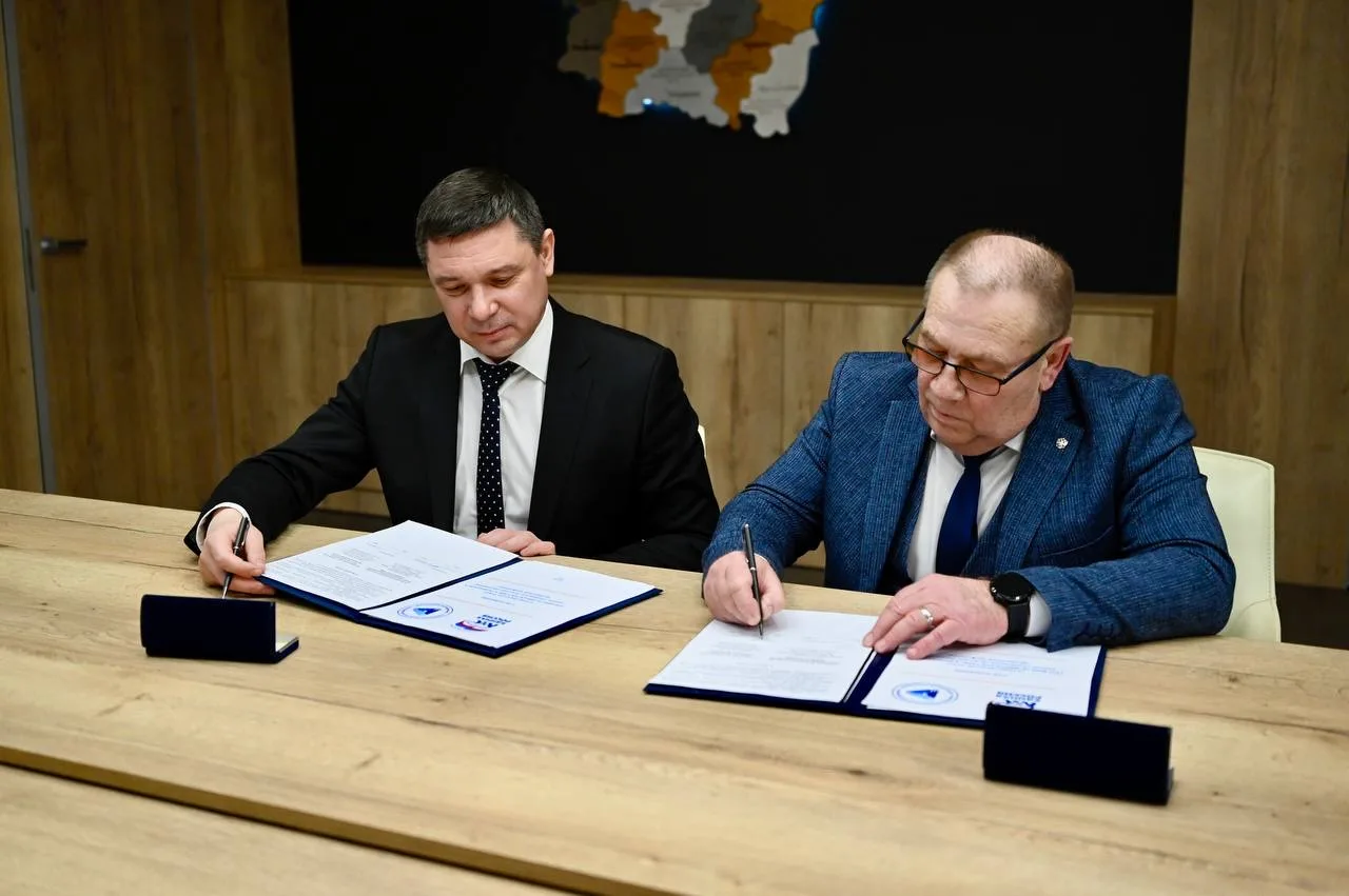 Как секретарь Тамбовского регионального отделения партии "Единая Россия" подписал соглашение о стратегическом партнёрстве в сфере защиты трудовых прав с председателем Тамбовского областного объединения организаций профсоюзов Геннадием Афанасовым.