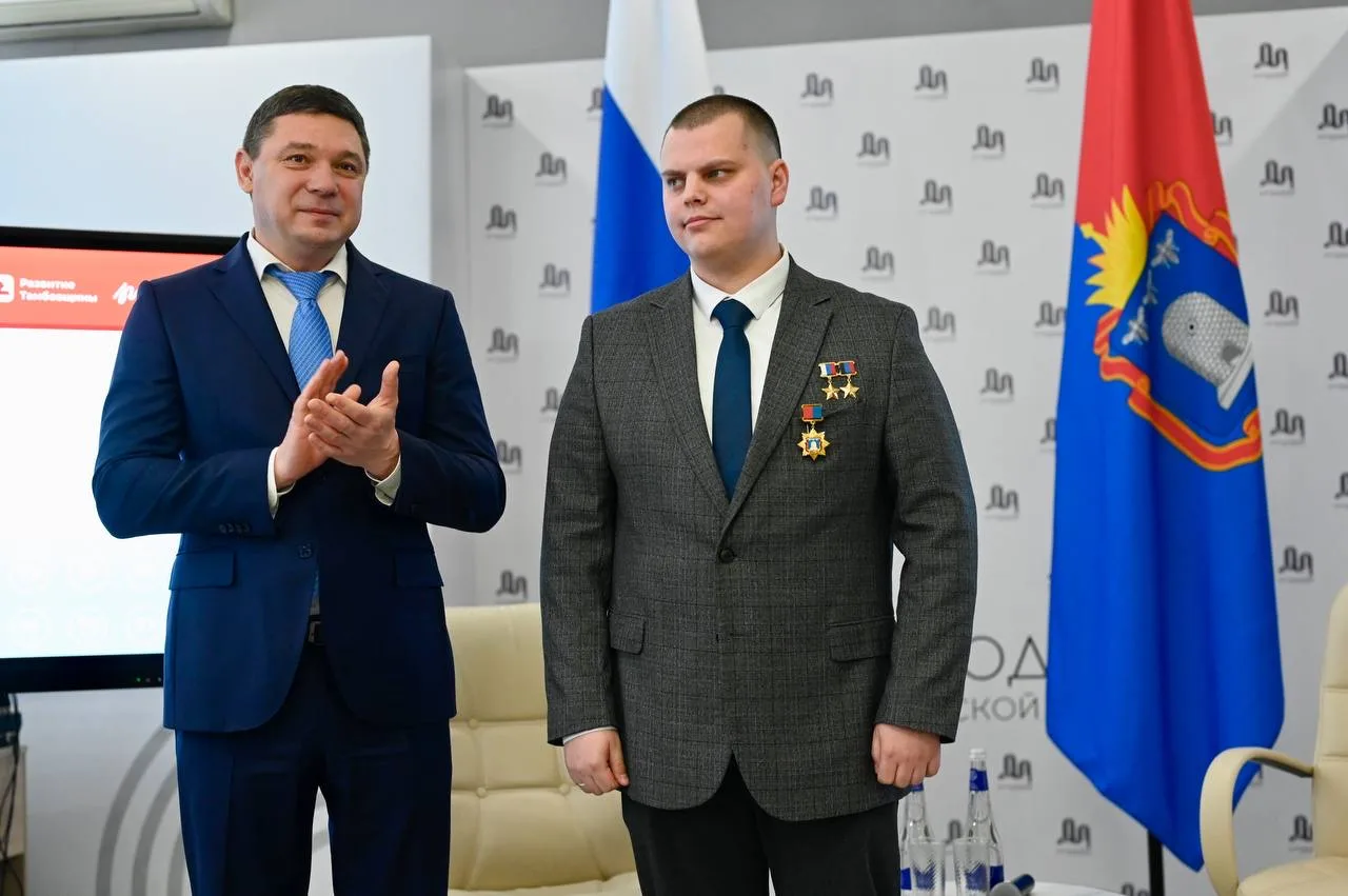 В День тамбовских героев вручил высшее звание региона - "Почётный гражданин Тамбовской области" - участнику специальной военной операции Эдуарду Казымову.