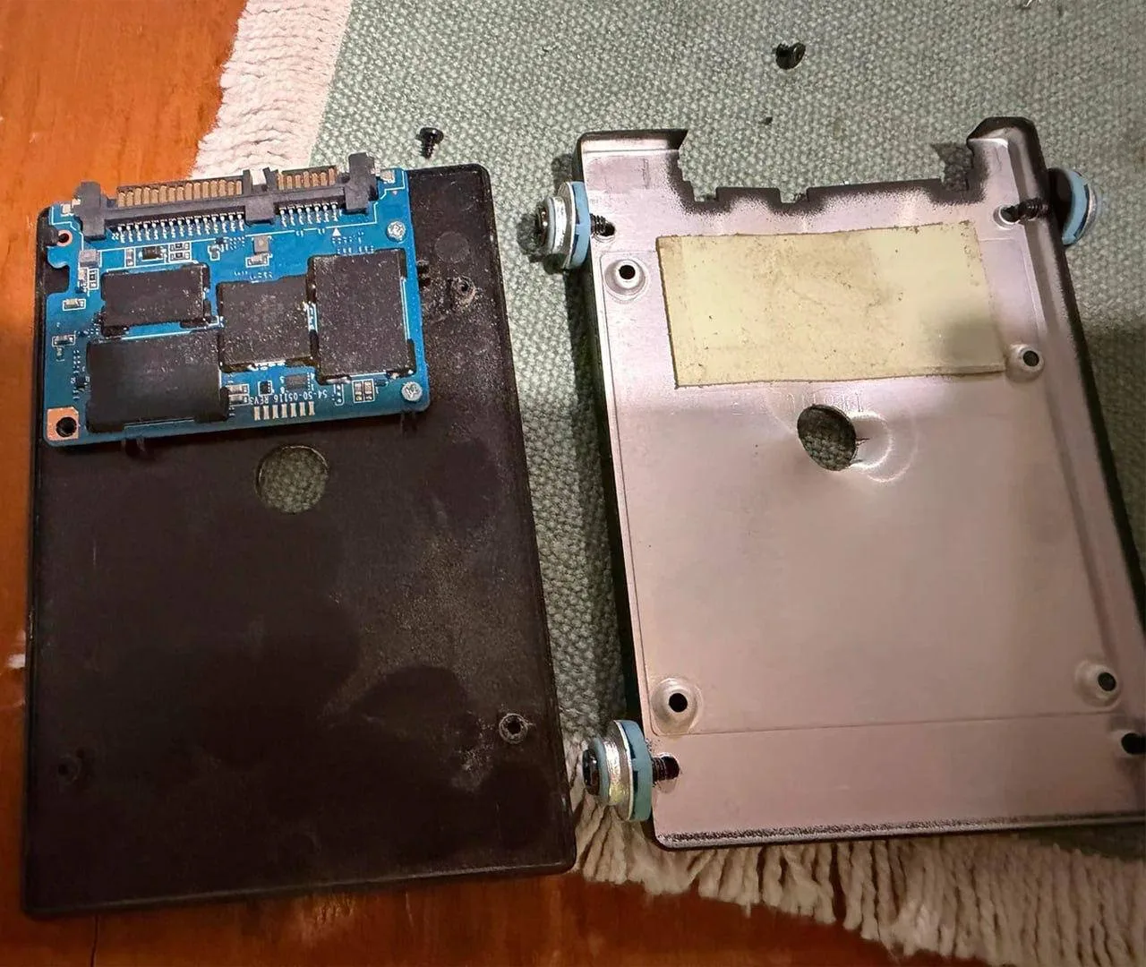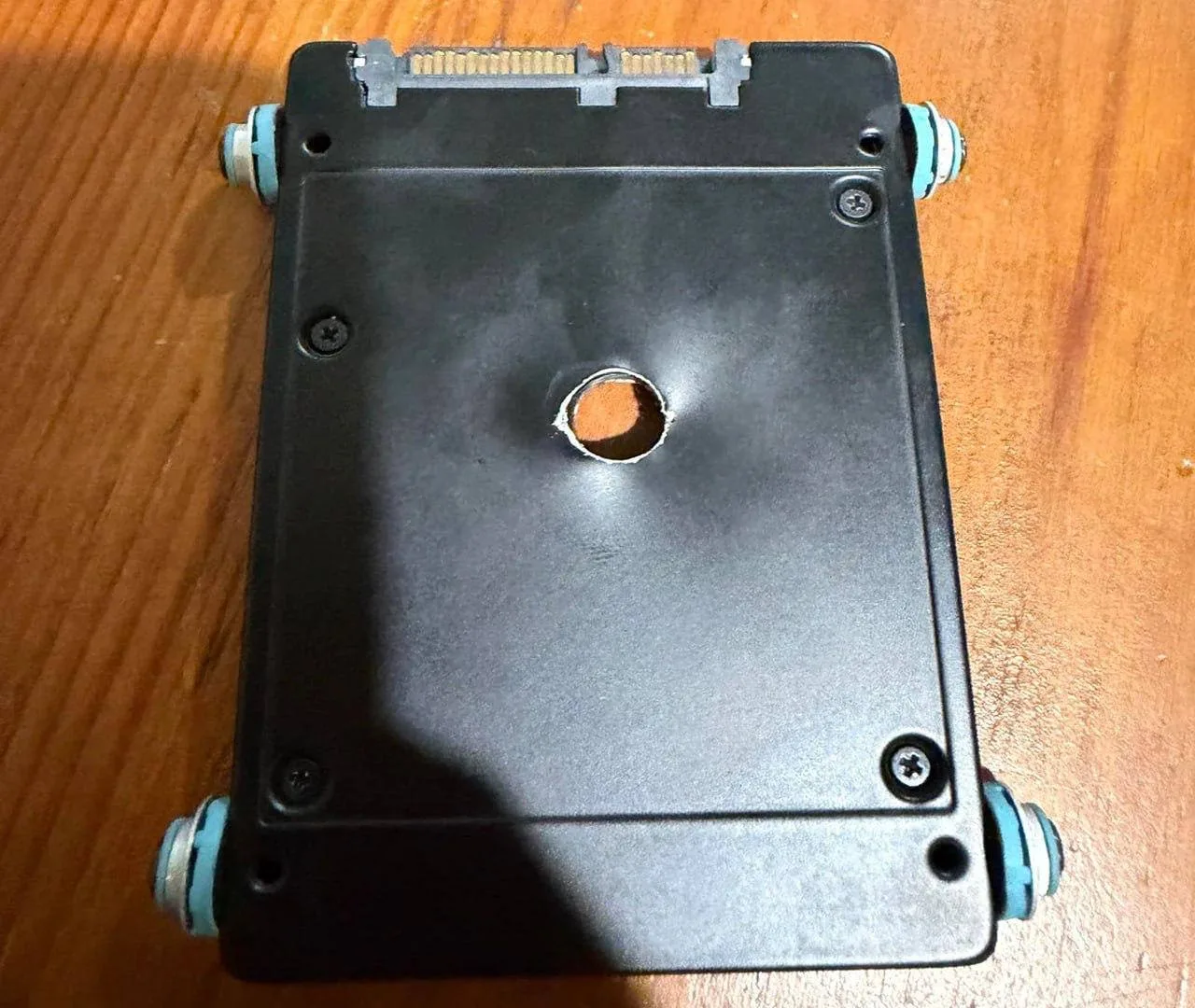 😁 Реддитор нашёл SSD-диск, бывший владелец просверлил дыру, чтобы уничтожить данные, но не попал в плату, и диск остался рабочим.