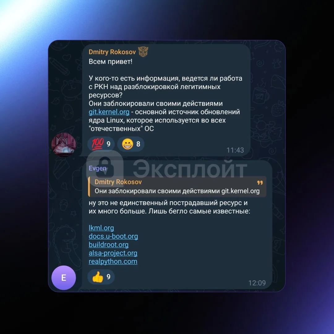 😡 РКН случайно заблокировал Linux в России — теперь для обновления ядра разработчикам отечественных ОС приходится включать VPN.