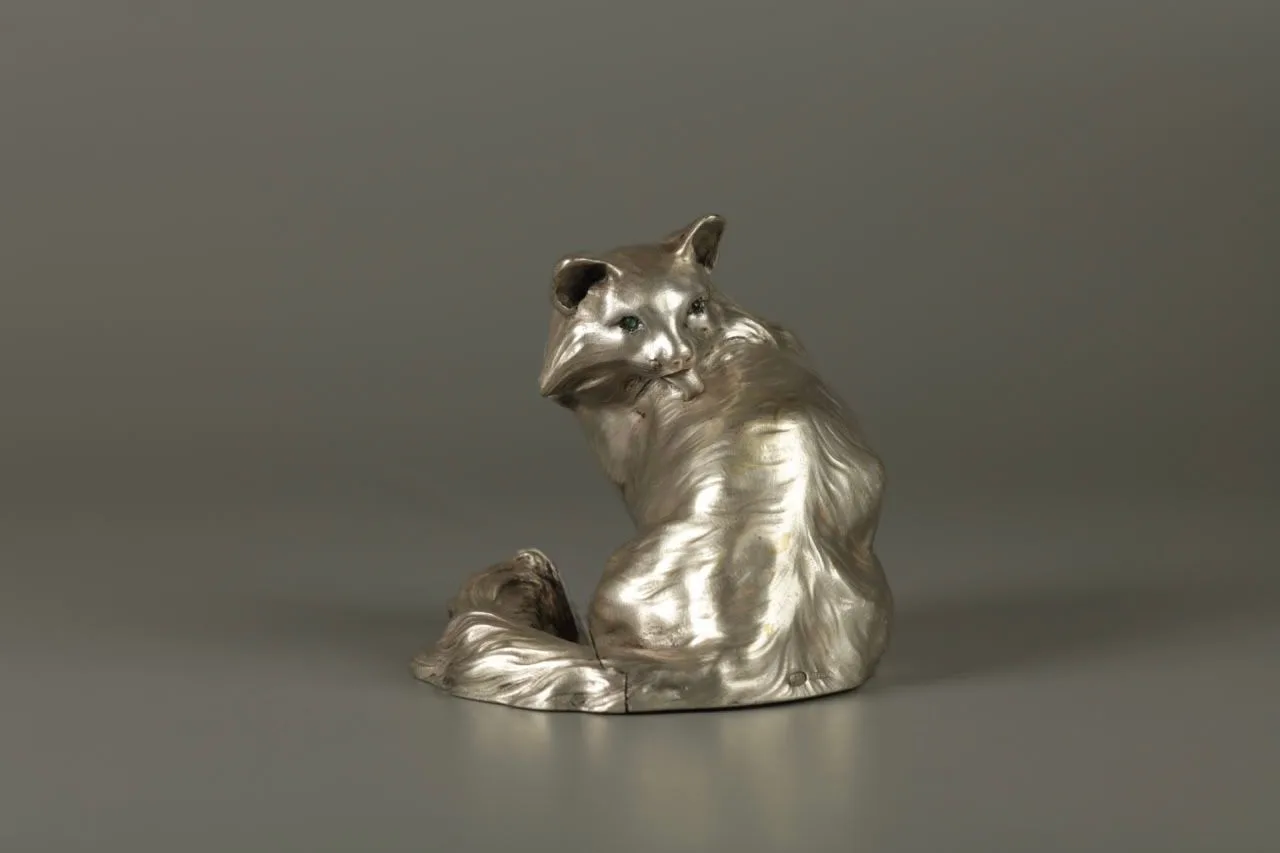Карл Фаберже всегда шел в ногу со временем, поэтому в магазине фирмы на Большой Морской улице клиенты могли приобрести различные электроприборы. На фото — настольный звонок в виде кошки🐱