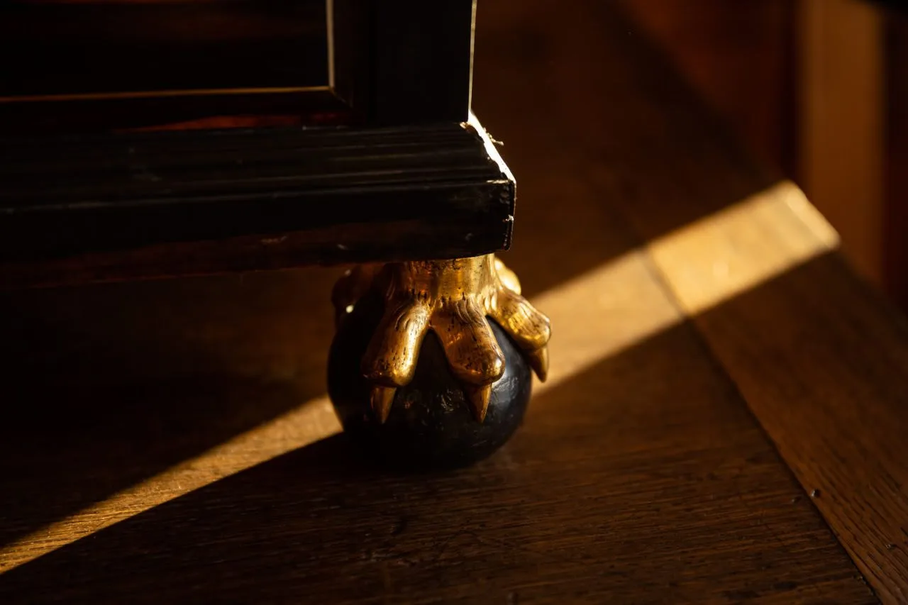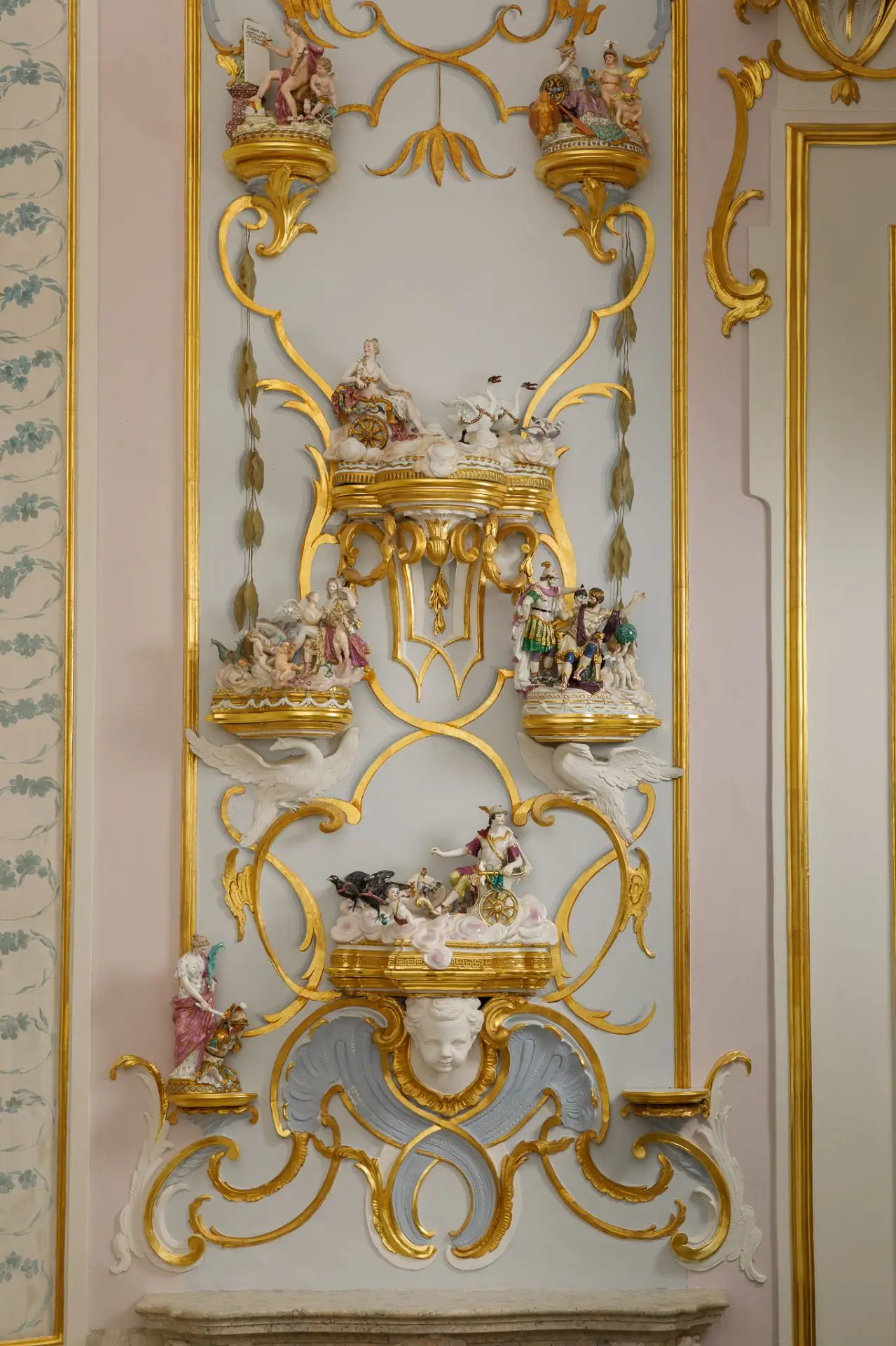 Дубовый кабинет Петра Великого — подлинная жемчужина Петергофа. Деревянные панели, украшающие его стены, на языке аллегорий прославляют императора, его военные победы, расцвет науки, искусств и торговли. В годы Великой Отечественной войны Дубовый кабинет серьезно пострадал: из 14 резных панно удалось эвакуировать лишь 8.