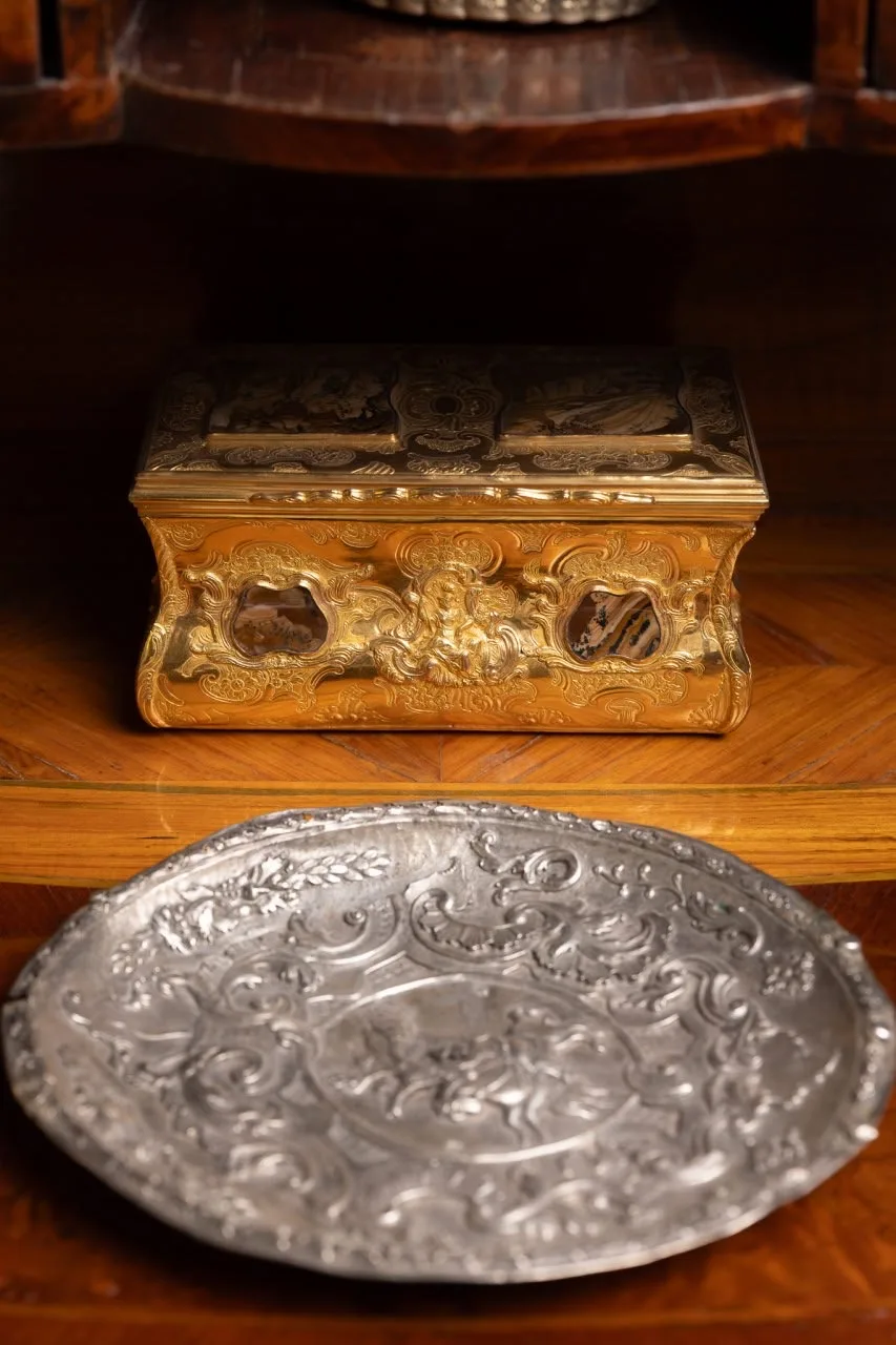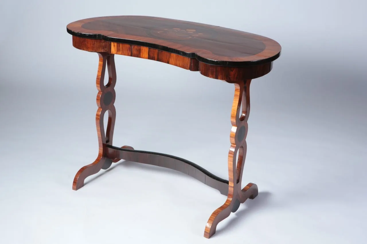 В коллекции Большого петергофского дворца можно встретить множество необычных предметов. Один из них – столик-бобик, изготовленный в конце XVIII века в России. Столешница, покрытая красным и розовым деревом, по форме напоминает боб, отсюда и название.