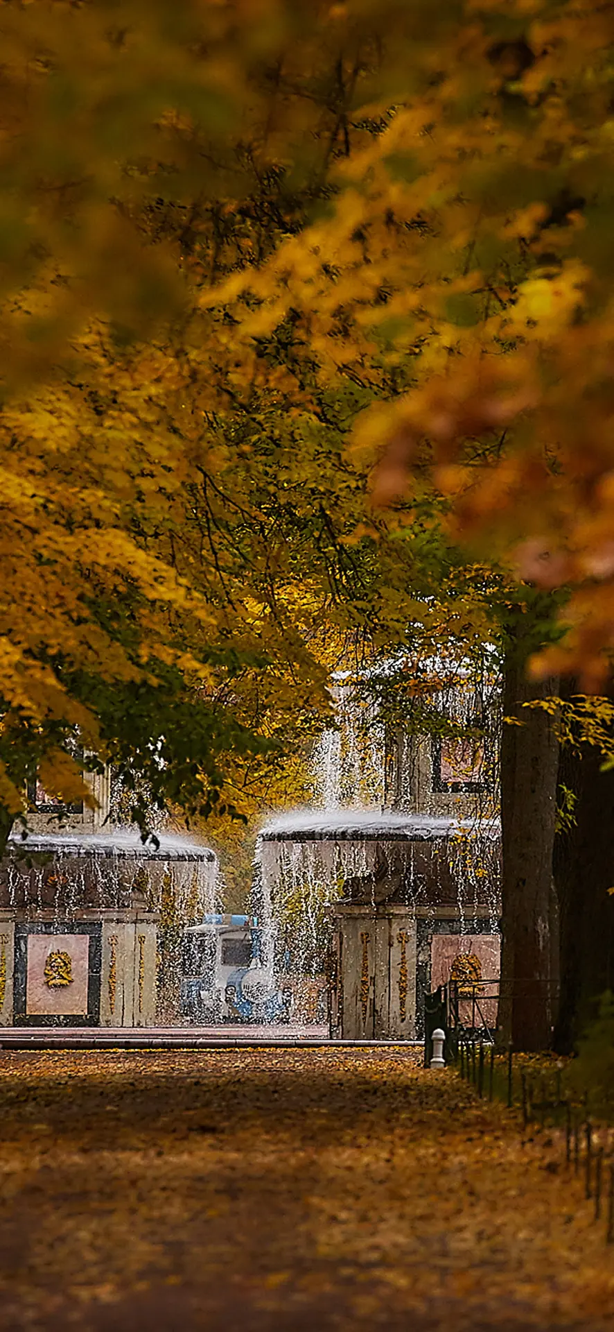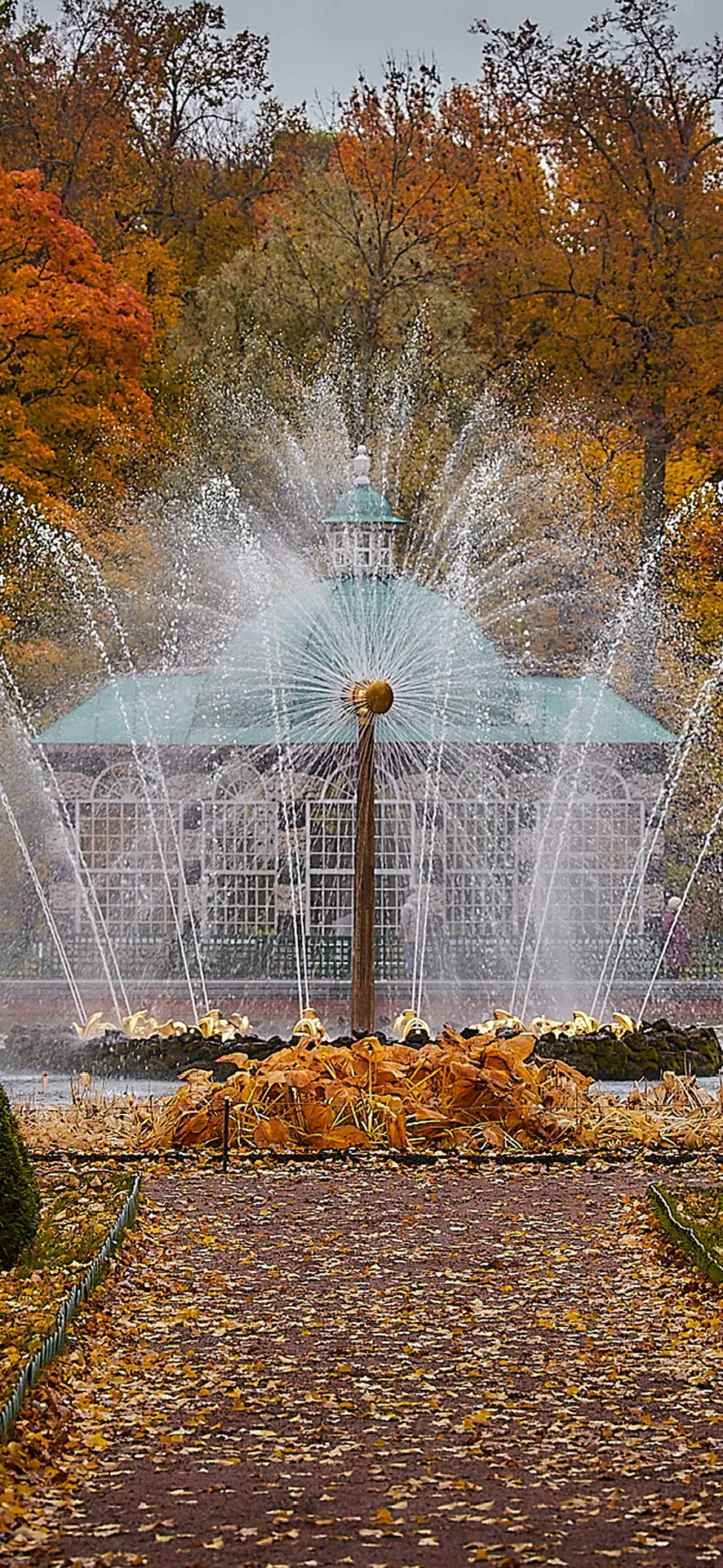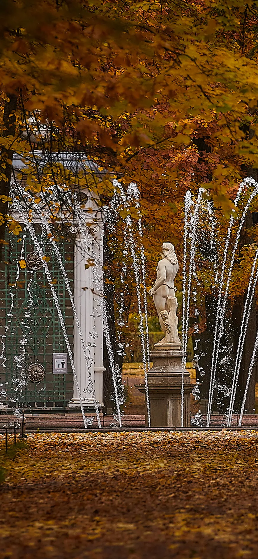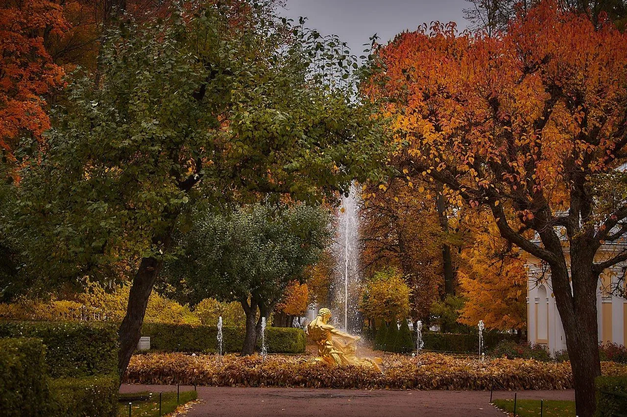 ⛲️успеть сфотографироваться с петергофскими фонтанами в окружении осенней листвы