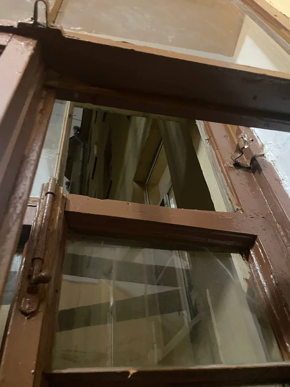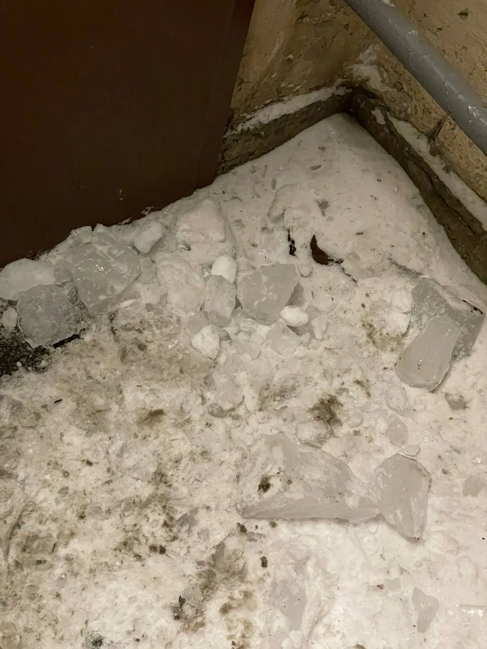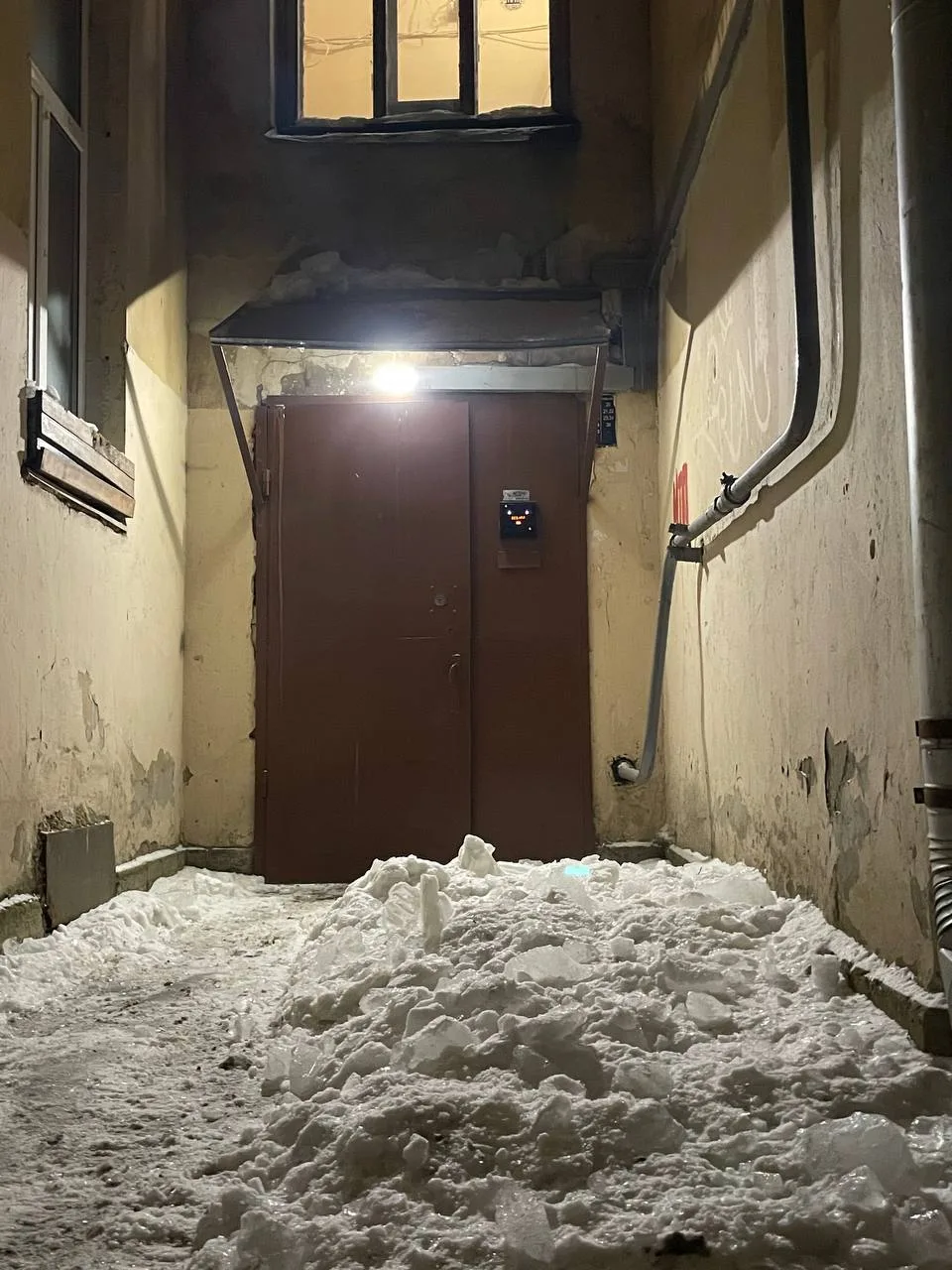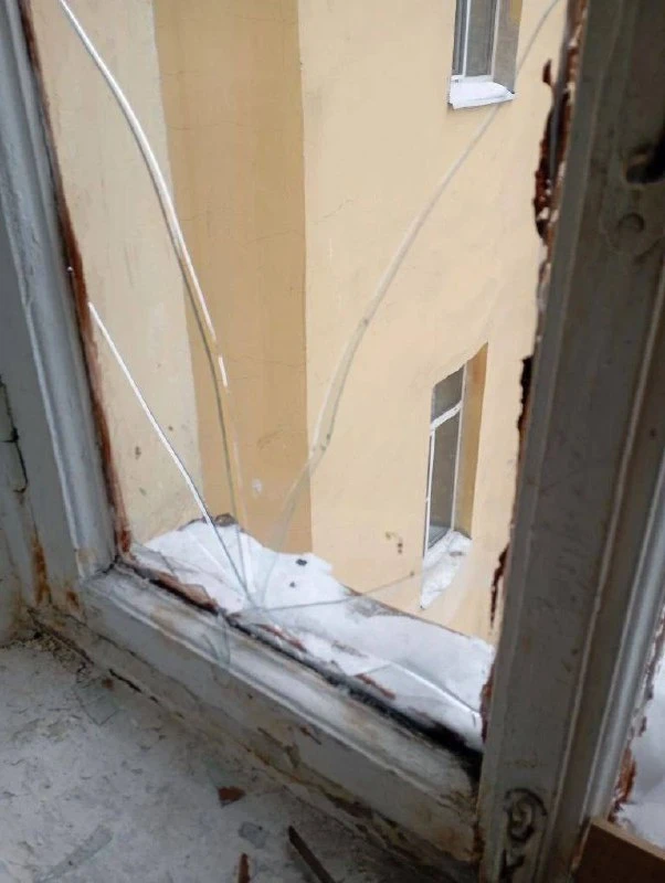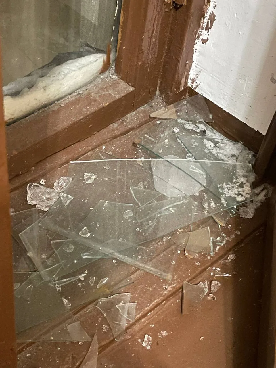 Мончегорская, д. 10 - последствия уборки снега с крыши - разбили окно в подъезде, ЖКС 2.