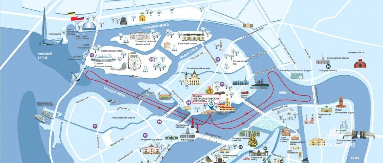 Судно будет выполнять по пять рейсов ежедневно, проходя по живописному маршруту от Петропавловской крепости по Большой и Малой Неве.