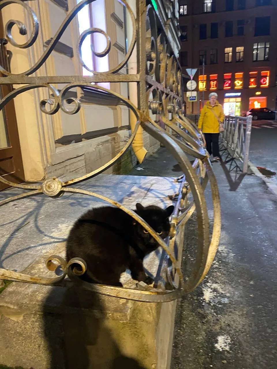 Кошечка нашлась чья-то черная сейчас 21:27 около Рыбацкой 5 напротив дикси