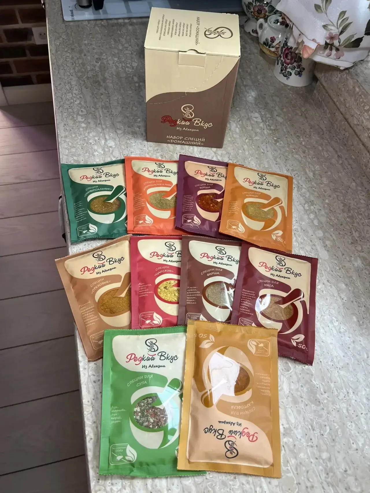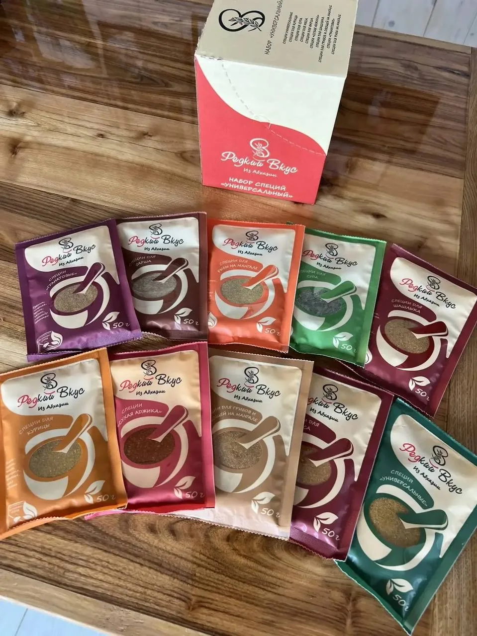 Продаются специи Редкий Вкус наборами, есть по 5 шт, я взяла сразу большой - Универсальный, где 10 пачек. Тут и для блюд на мангале, и для домашней кухни😋 Пачки увесистые, на что я часто готовлю, и то поняла, что такого набора хватит надолго👌