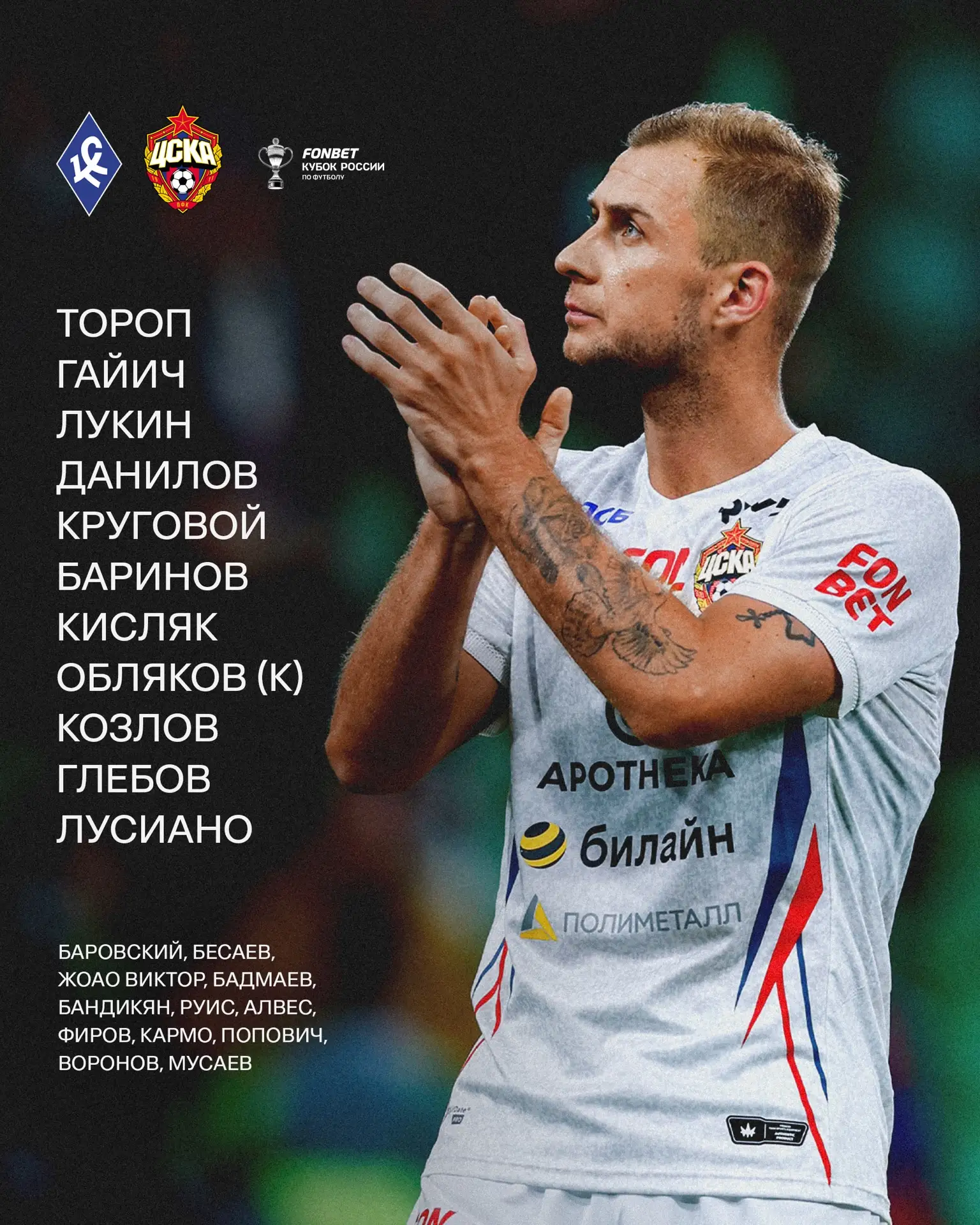 Стартовый состав на кубковый матч с «Крыльями» ⚔️