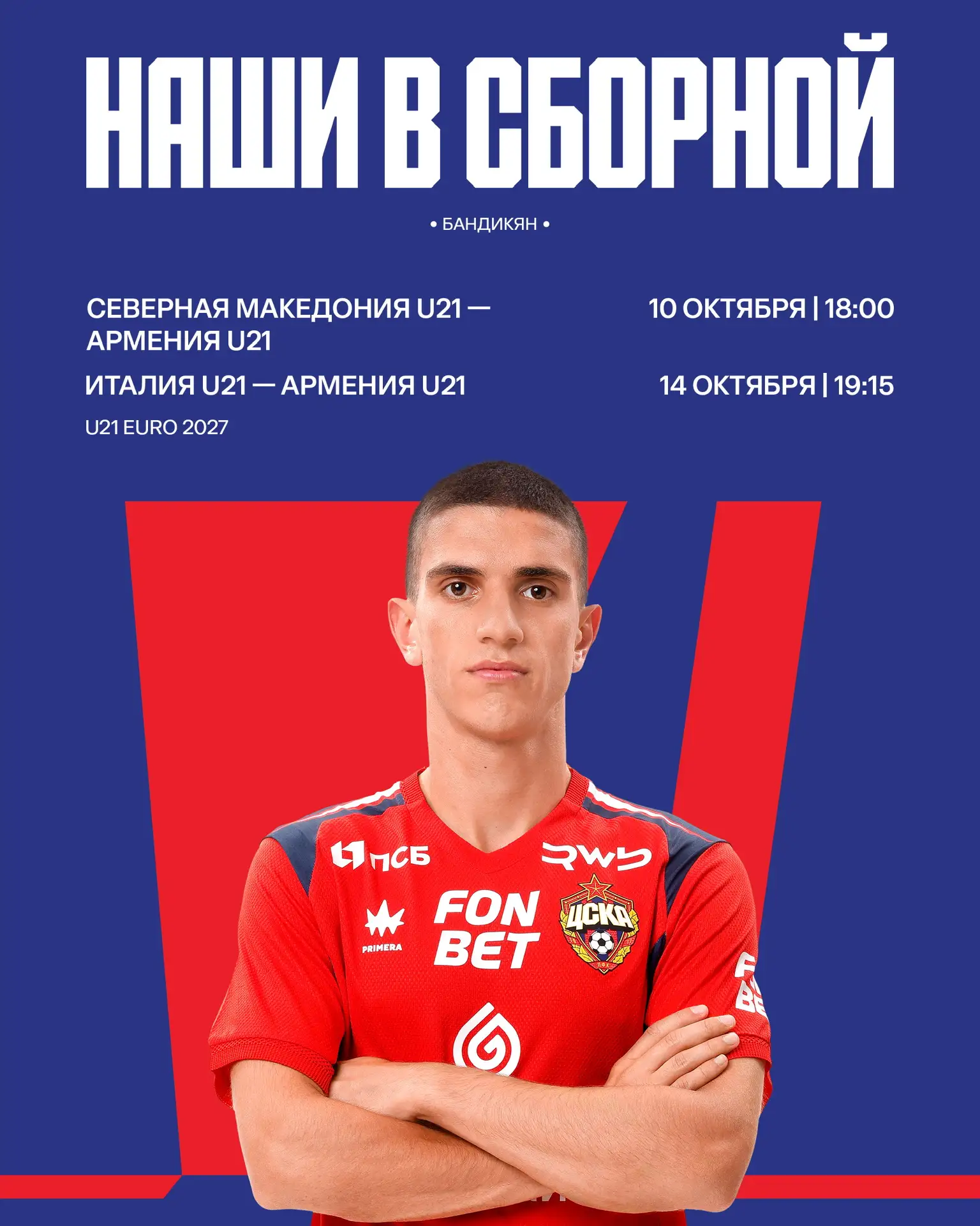 🇦🇲 Бандикян в молодежке Армении. Предстоят матчи отбора на молодежный ЧЕ. Соперники – Италия и Северная Македония