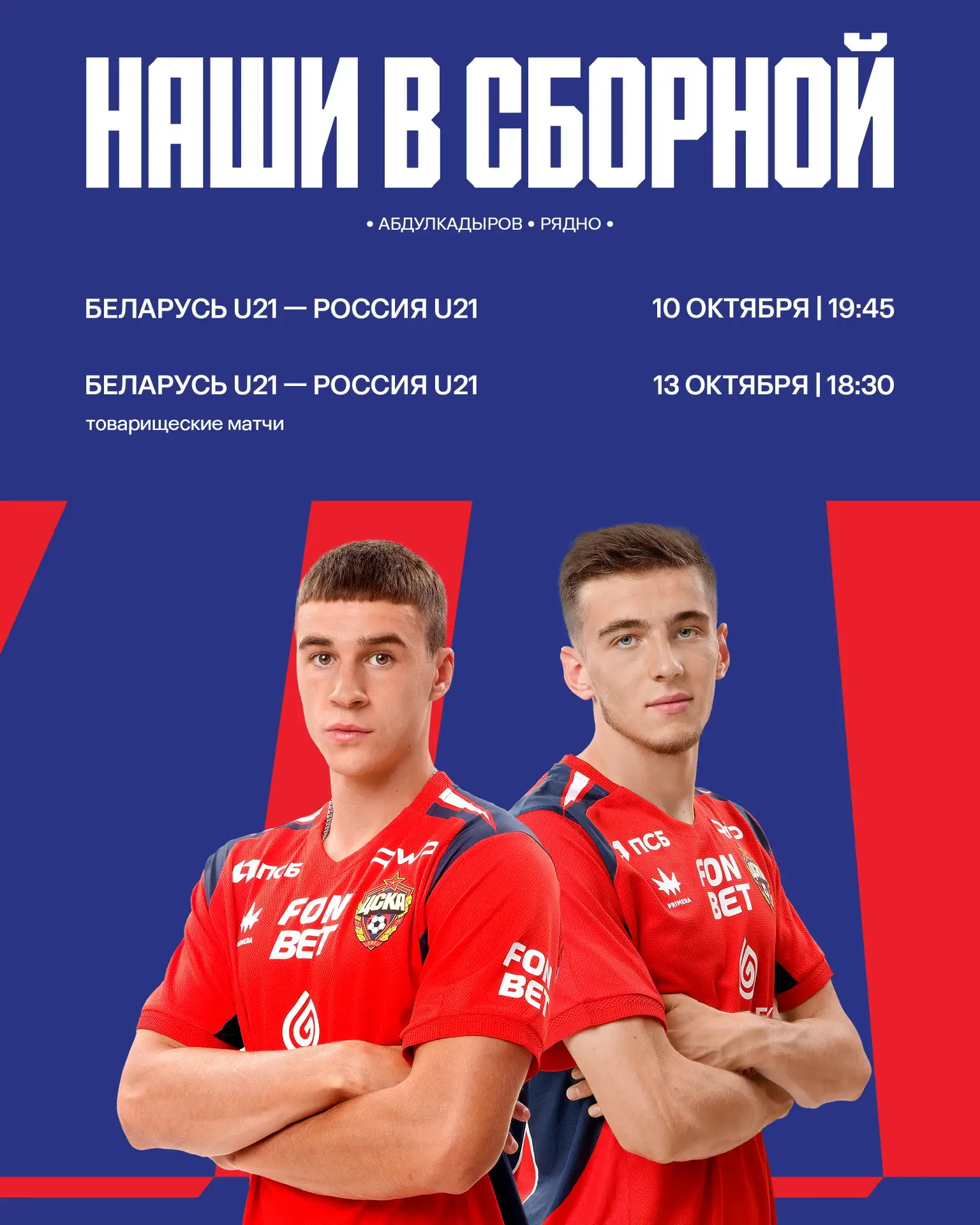 🇷🇺 Абдулкадыров и Рядно в молодежке – готовятся к матчам с Беларусью
