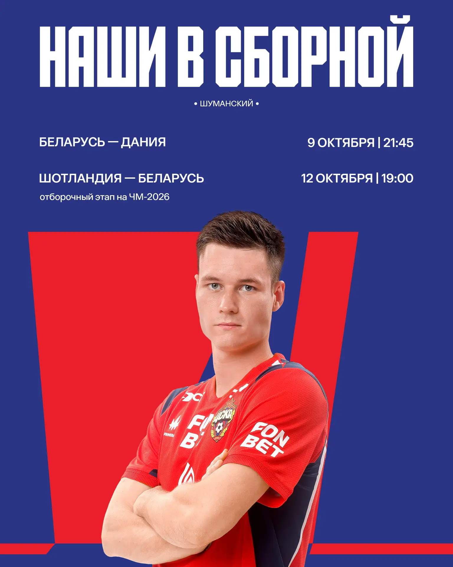 🇧🇾 Шуманский вызван в сборную Беларуси. Впереди игры против Дании и Шотландии в отборе на ЧМ-2026
