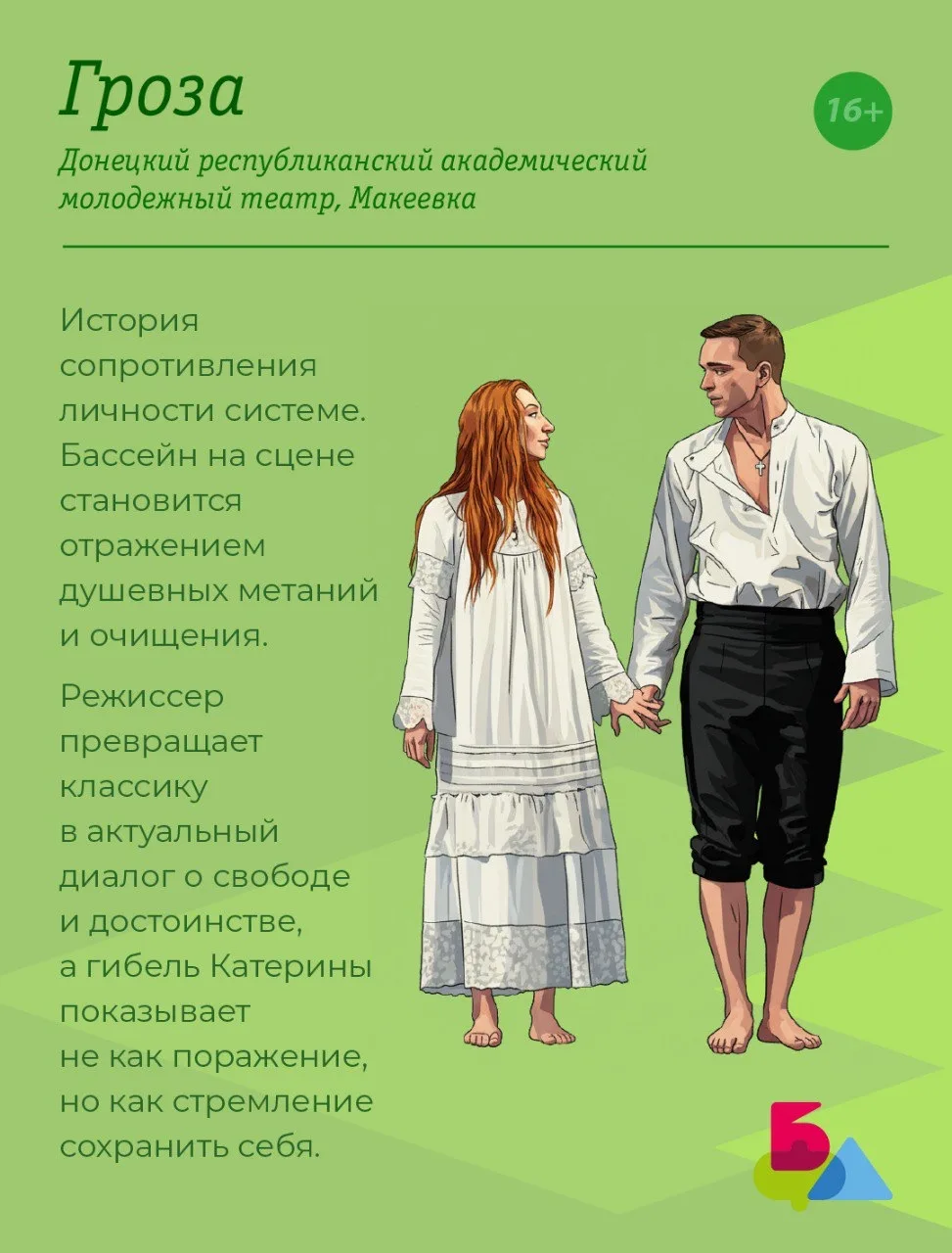С октября по декабрь на главных театральных площадках столицы фестиваль представит лучшие премьерные спектакли молодых режиссеров страны. В программе – 15 постановок, которые покажут театры из девяти регионов России. В рамках внеконкурсной программы к 80-летию Великой Победы будет представлен спектакль «Живые картины блокады» театра-фестиваля «Балтийский дом», основанный на документальных свидетельствах сотрудников Эрмитажа.