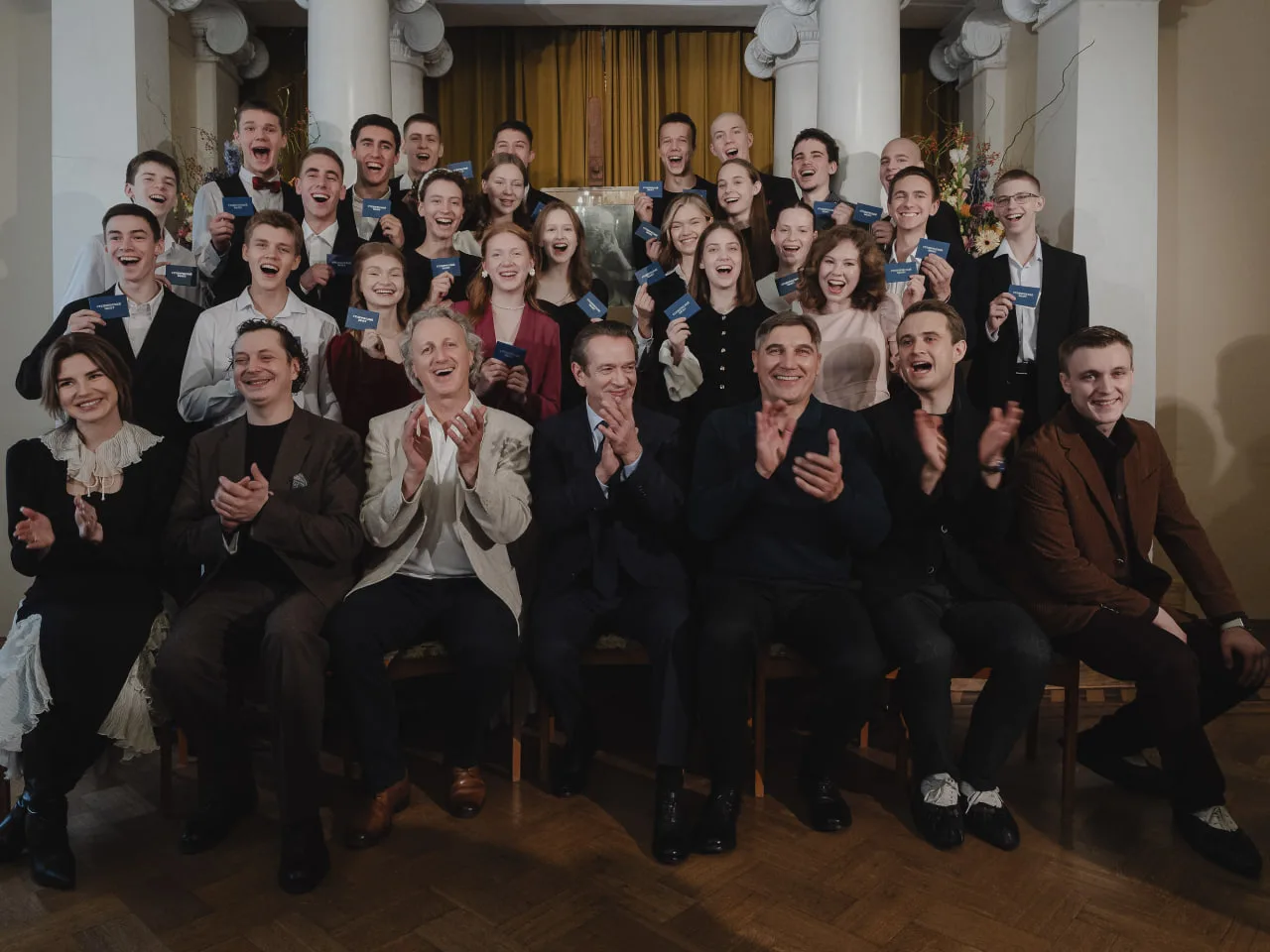Вот эти счастливые ребята, их 25, получили свои студенческие билеты из рук Владимира Львовича Машкова — теперь они учатся в Школе Табакова. Все — из разных регионов, прошли честные отборы либо в своих родных городах, либо специально приезжали из небольших населенных пунктов туда, где при поддержке Президентского фонда культурных инициатив проходили прослушивания. Более 2 тысяч претендентов — какая конкуренция, но и какие возможности!