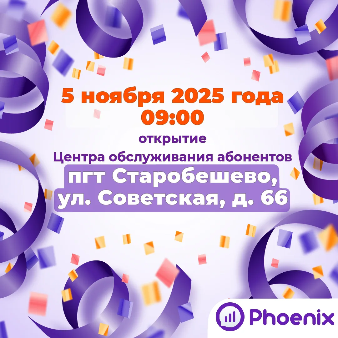 Завтра, 05 ноября в 09:00, состоится открытие нового Центра обслуживания абонентов ГУП ДНР «РОС» (тм «Феникс») по адресу: РФ, ДНР, пгт Старобешево, ул. Советская, д. 66.