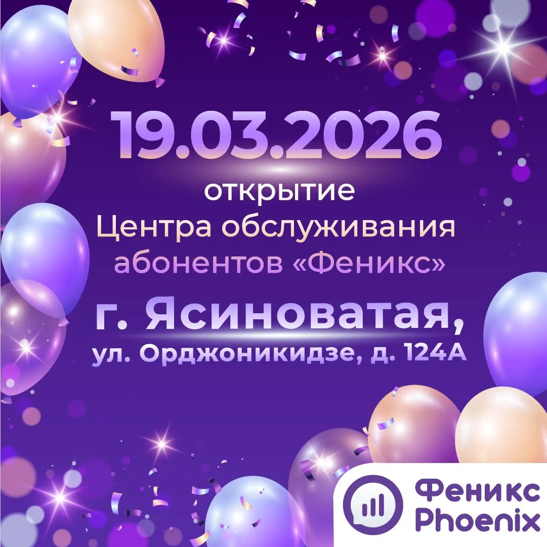 Завтра, 19 марта в 10:00, состоится открытие Центра обслуживания абонентов ГУП ДНР «РОС» («Феникс») по адресу: РФ, ДНР, г. Ясиноватая, ул. Орджоникидзе, д. 124А (помещение бывшего ГУП ДНР «КОМТЕЛ»).