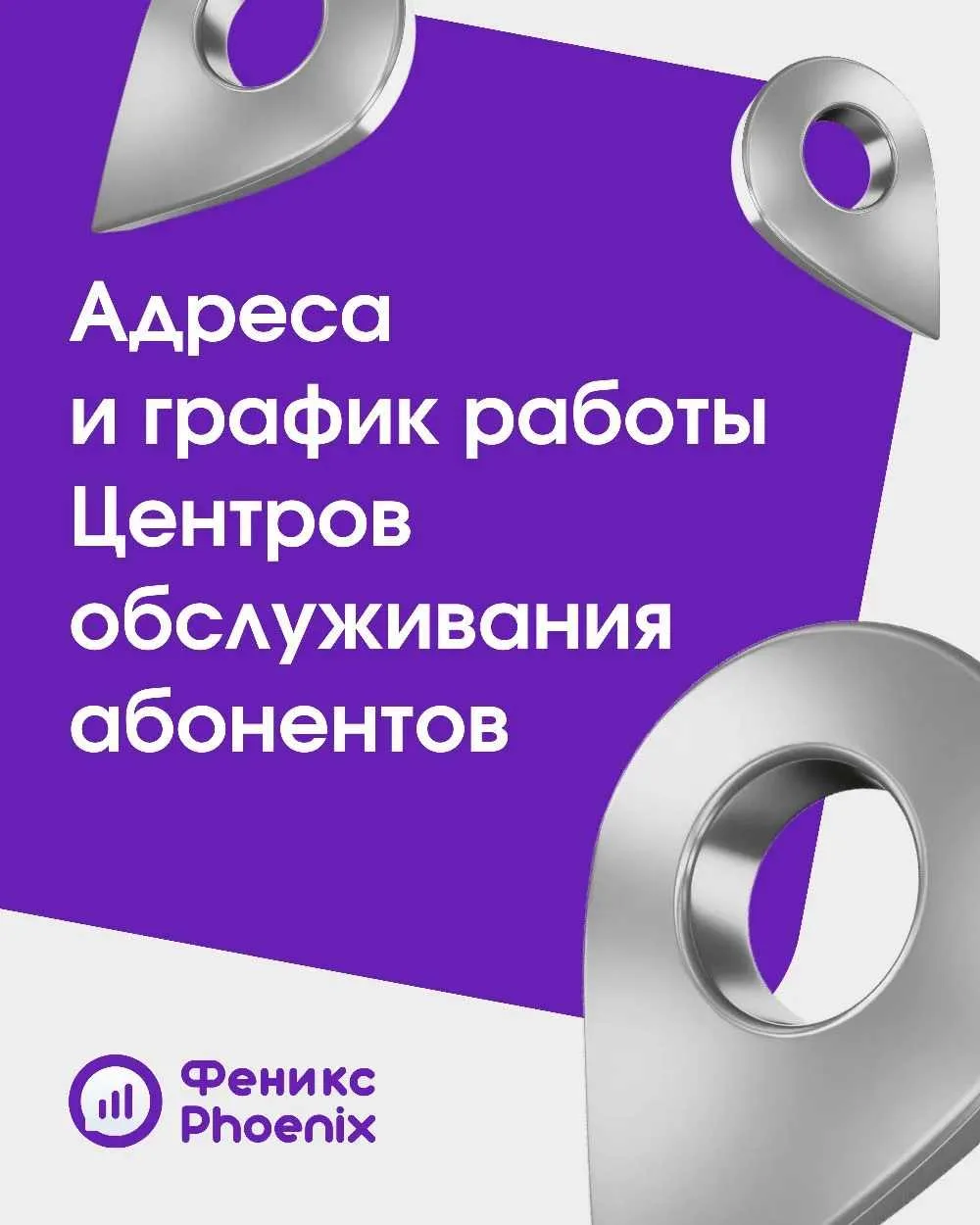 Сохраните адреса и график работы Центров обслуживания абонентов в зоне покрытия оператора, и выбирайте площадку, посещение которой будет вам максимально удобно.
