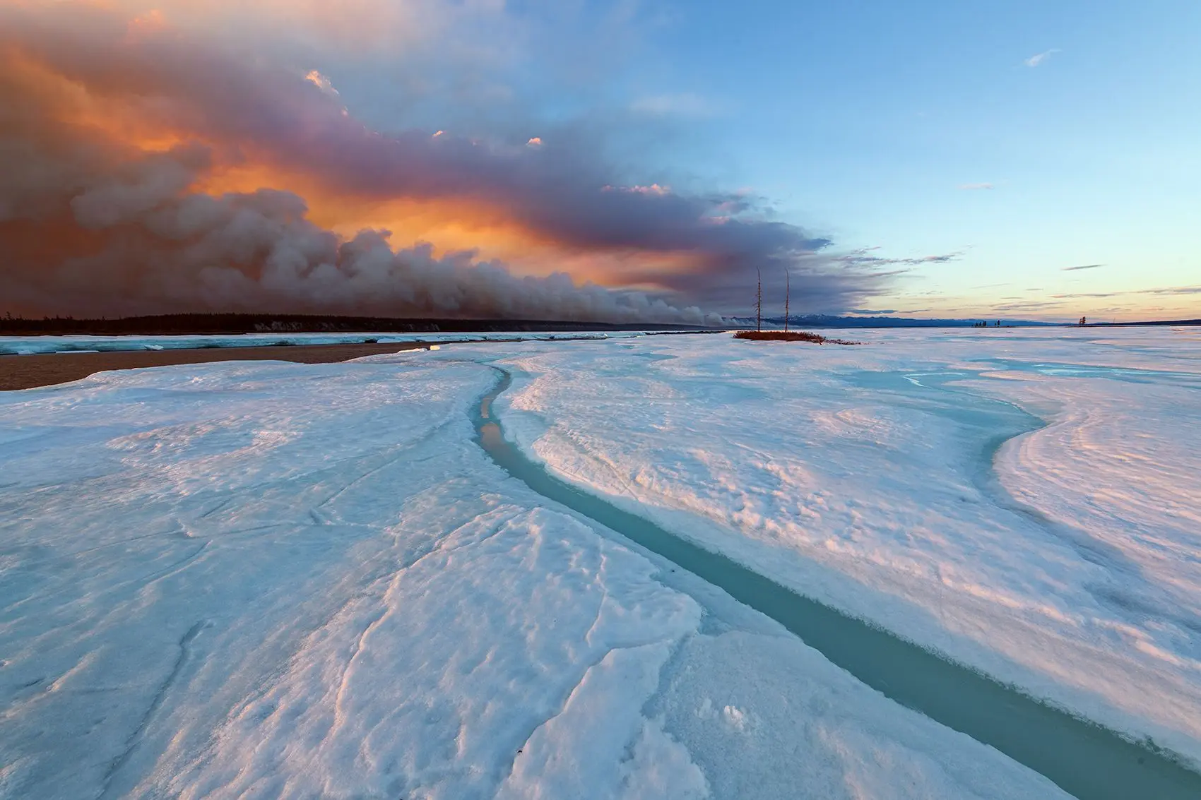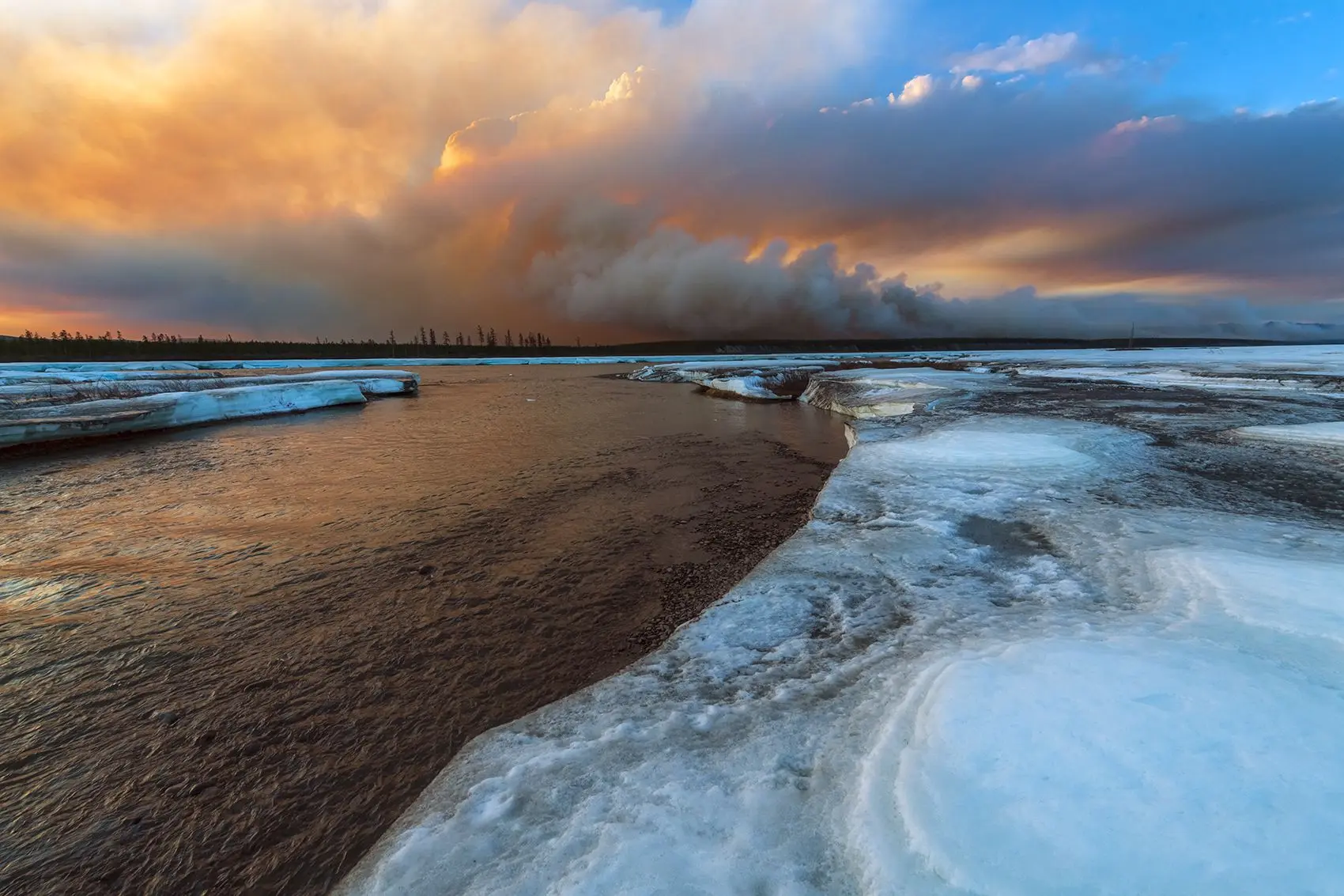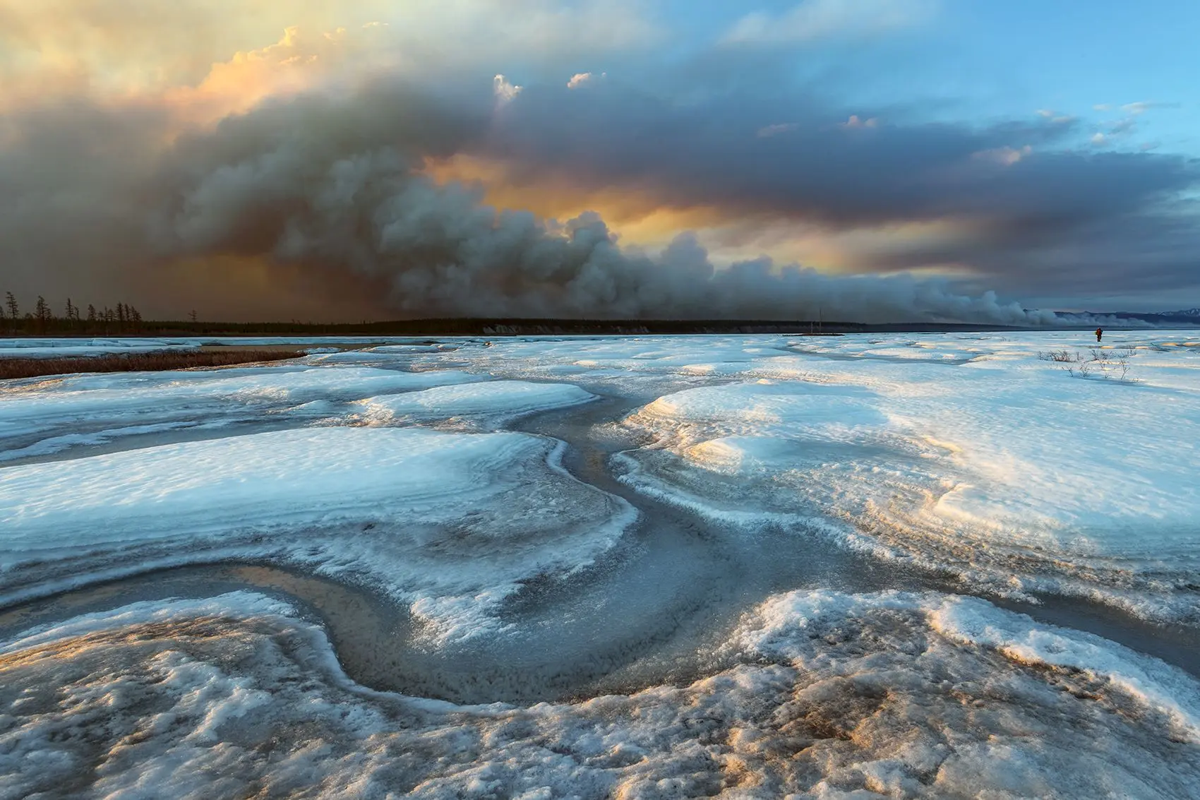 В июне 2024 года рядом с Большой Момской наледью случился таёжный пожар. Я там как раз фототур проводил со своей группой. Вот здесь пример, как стихийное бедствие может оказаться элементом в пейзажной фотографии.