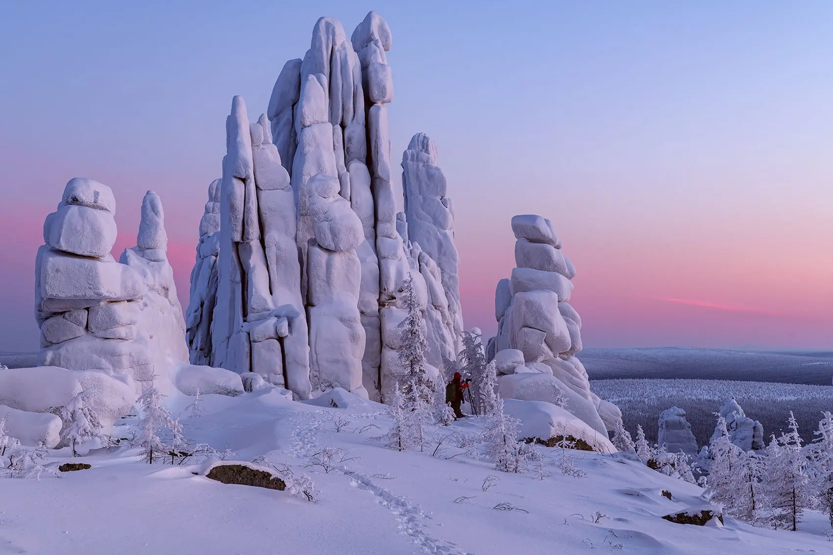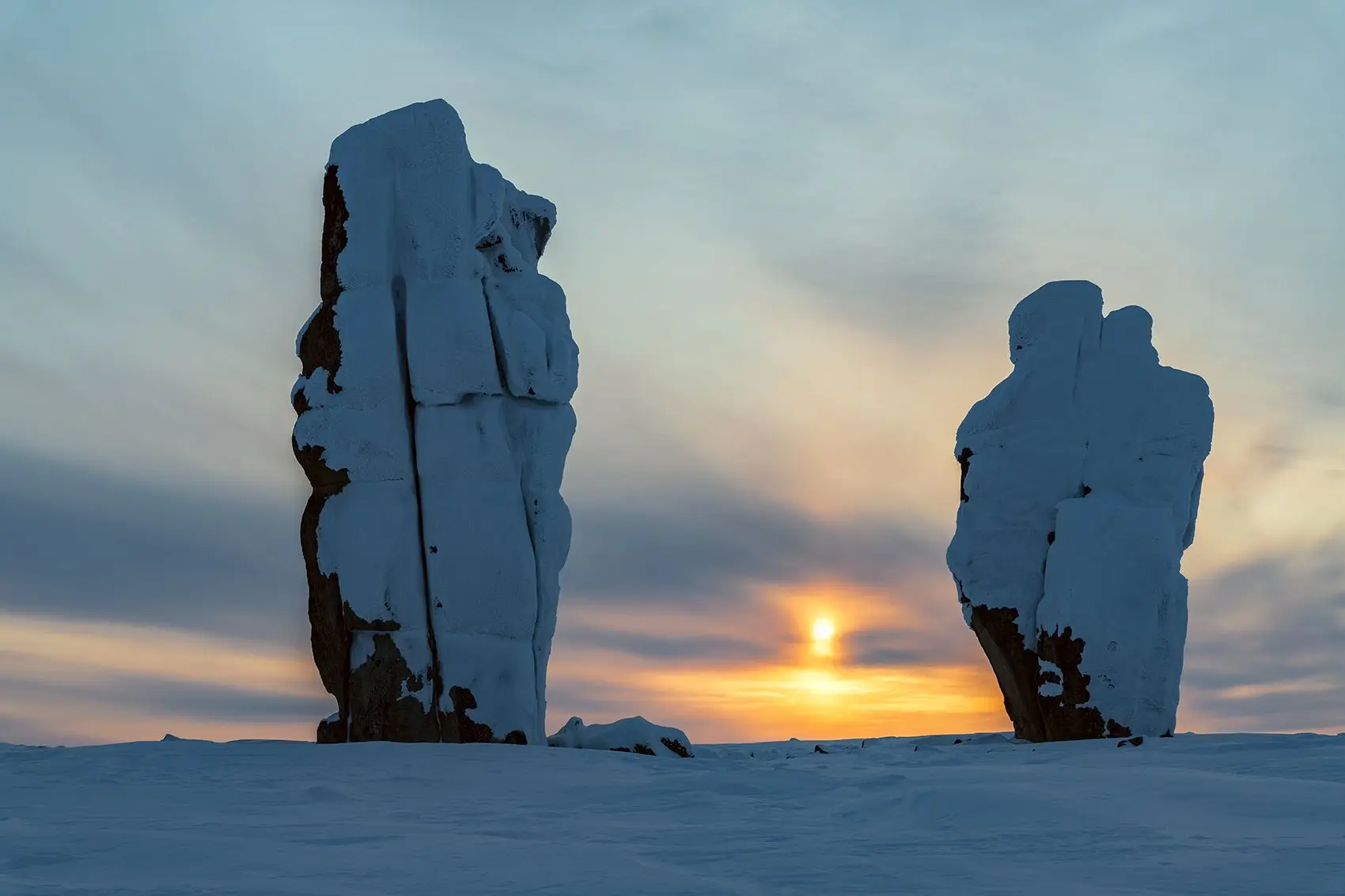 В этом году исполняется 10 лет, как мне посчастливилось явить миру "Гранитные города Улахан-Сис" - уникальный останцовый ландшафт в заполярной Якутии в низовьях Индигирки. Но у этой истории есть своя предыстория и если можно так сказать, то Гранитные города являются побочным явлением на пути к совсем другому ландшафтному объекту, до которого я так до сих пор и не добрался, хотя стремлюсь к нему уже лет 15-20. Сундрунские кекуры или "Каменные люди Сундруна". Это тоже останцовый ландшафт, который находится в 200 километрах к северо-востоку от Гранитных городов, только гораздо более обширный и масштабный. Собственно это северо-восточная оконечность того же самого кряжа Улахан-Сис и местный массив даже носит собственное название Суор-Уйята, что переводится как гнездо ворона. И вот теперь я близок к цели. Сегодня вылетаю в Якутск, оттуда в Среднеколымск, потом 7 часов на автомобиле по зимнику Арктика, ведущему на Чукотку до посёлка Андрюшкино, где живут юкагиры. Потом 10 часов на снегоходах и мы на месте, где поставим палаточную базу и будем снимать этот удивительный ландшафт на протяжении нескольких дней. Нам предстоит жить в суровых условиях посреди Алазейской тундры и там ещё полноценная зима. И если есть у земли край, то там край за краем. Очень надеюсь на успех нашей экспедиции.