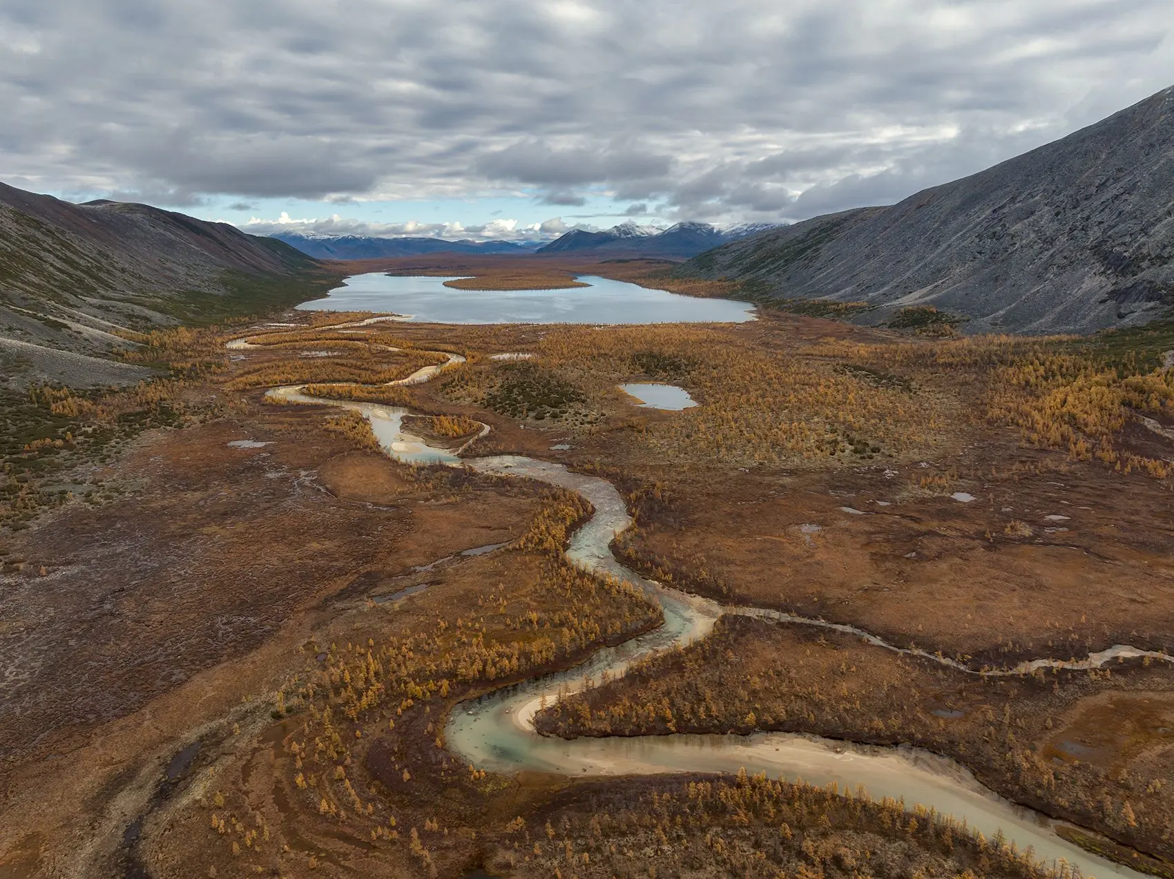 Долина реки Быстрая, которая впадает в колымское озеро Юг очень похожа на долину реки Пурга, которая тоже впадает в гораздо более известное колымское озеро Джека Лондона. Впрочем, я немало повидал колымских озёр и такой ландшафт много где повторяется. Это неудивительно. Там когда-то активно поработали ледники и разработали вот такие корытообразные, как их называют, троговые долины. Собственно дно этих долин практически плоское, будто участок равнины и потому реки там меандрируют до впадения в озеро.